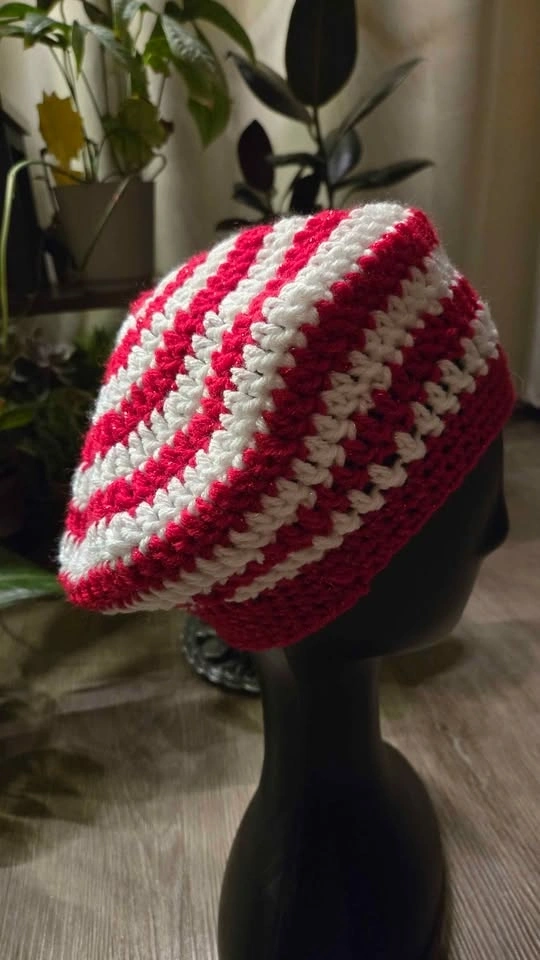 Handmade Peppermint Candy Hats. Red and white fits sizes 5-10. Coral and white fits small adult. Accepting orders for custom sizes and colors with a $20 non-refundable deposit. Prices will vary depending on size.