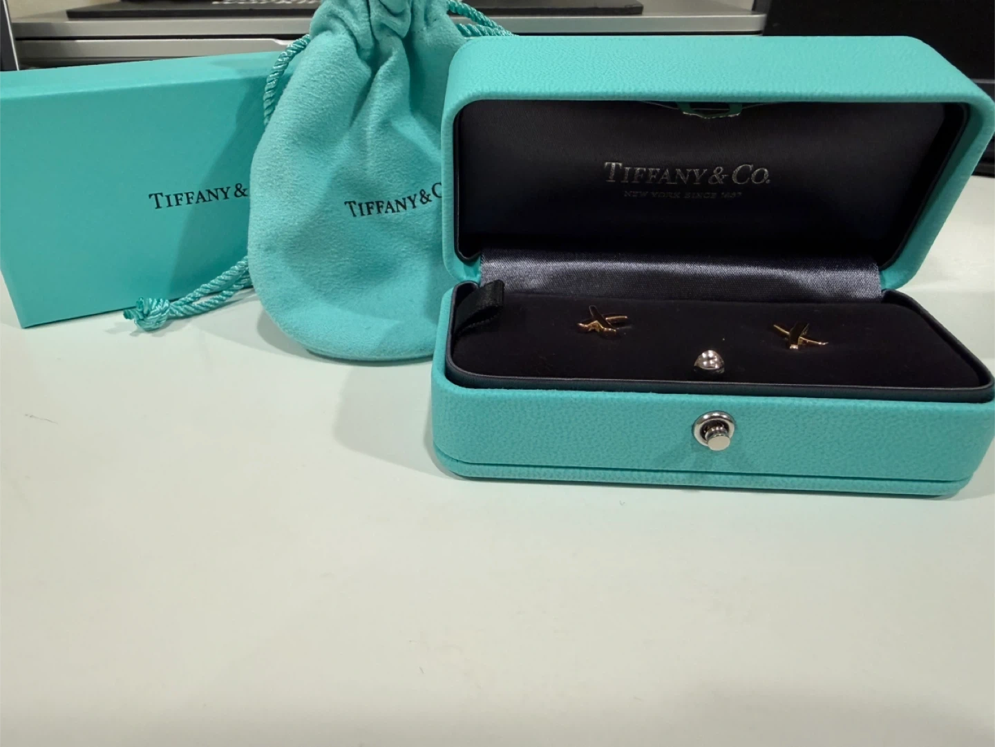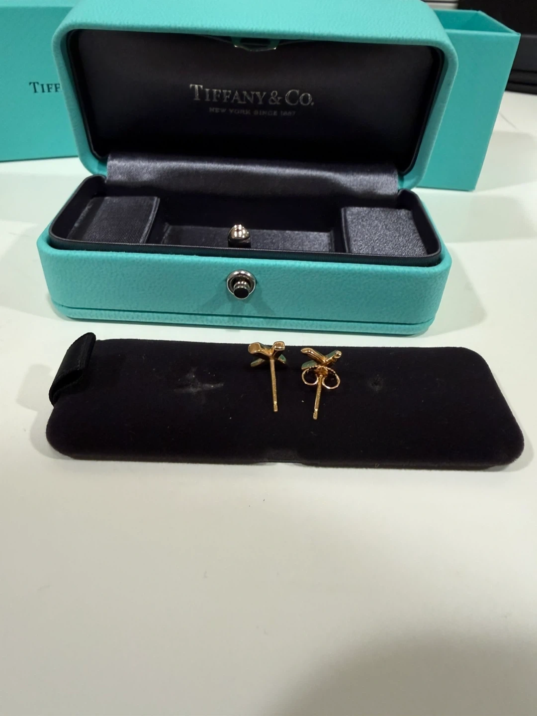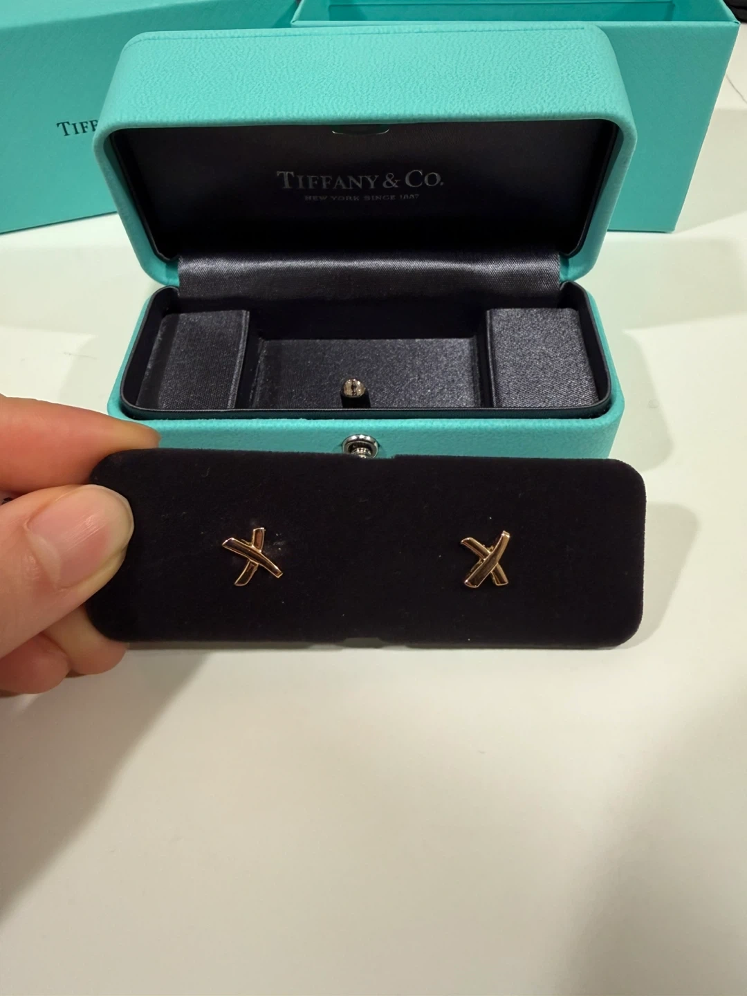 Selling a pair of Tiffany & Co. Paloma Grafiti X gold earrings! They come with the original box. These earrings are a beautiful and classic design from a well-known brand, perfect for any occasion.
