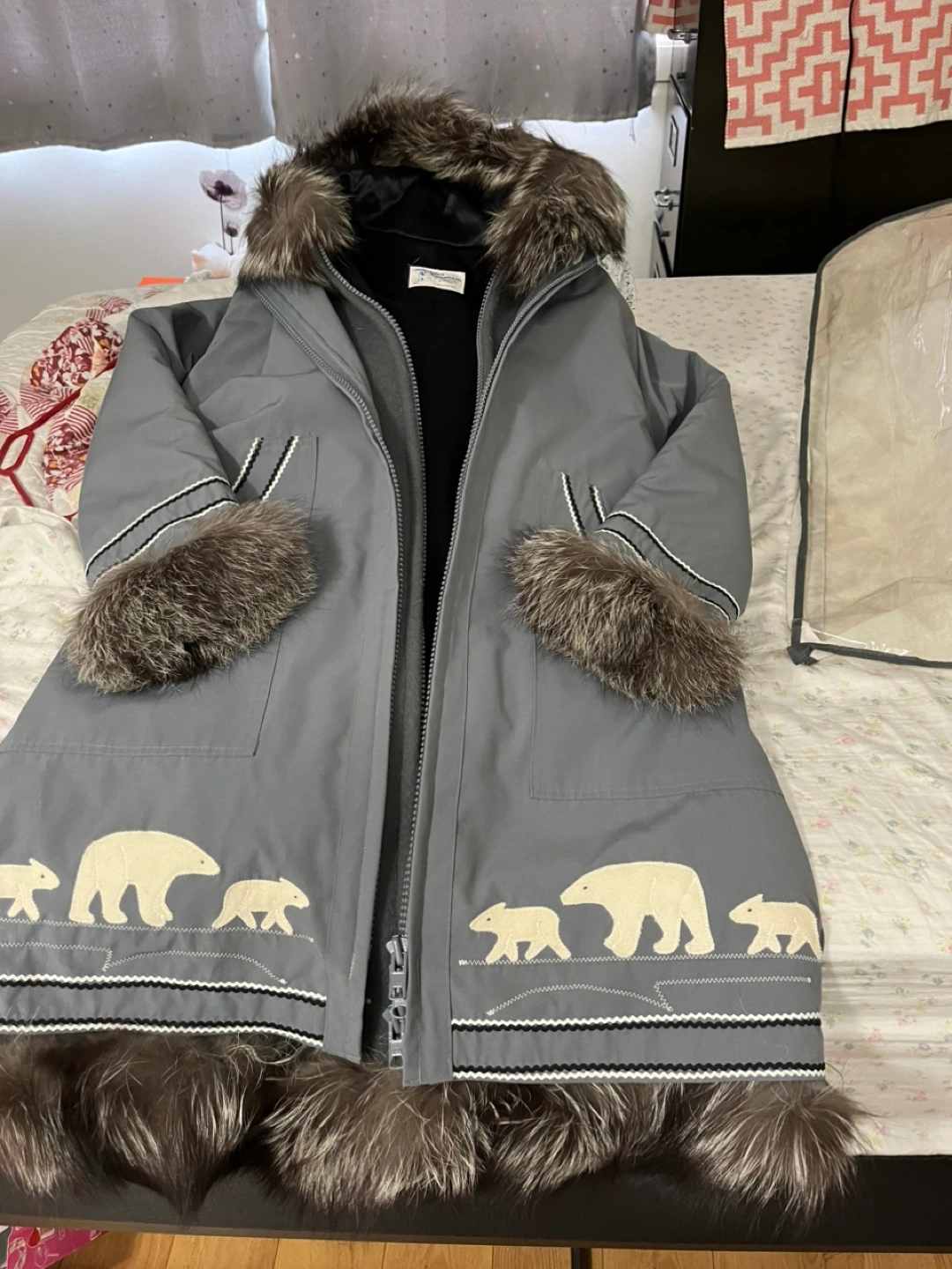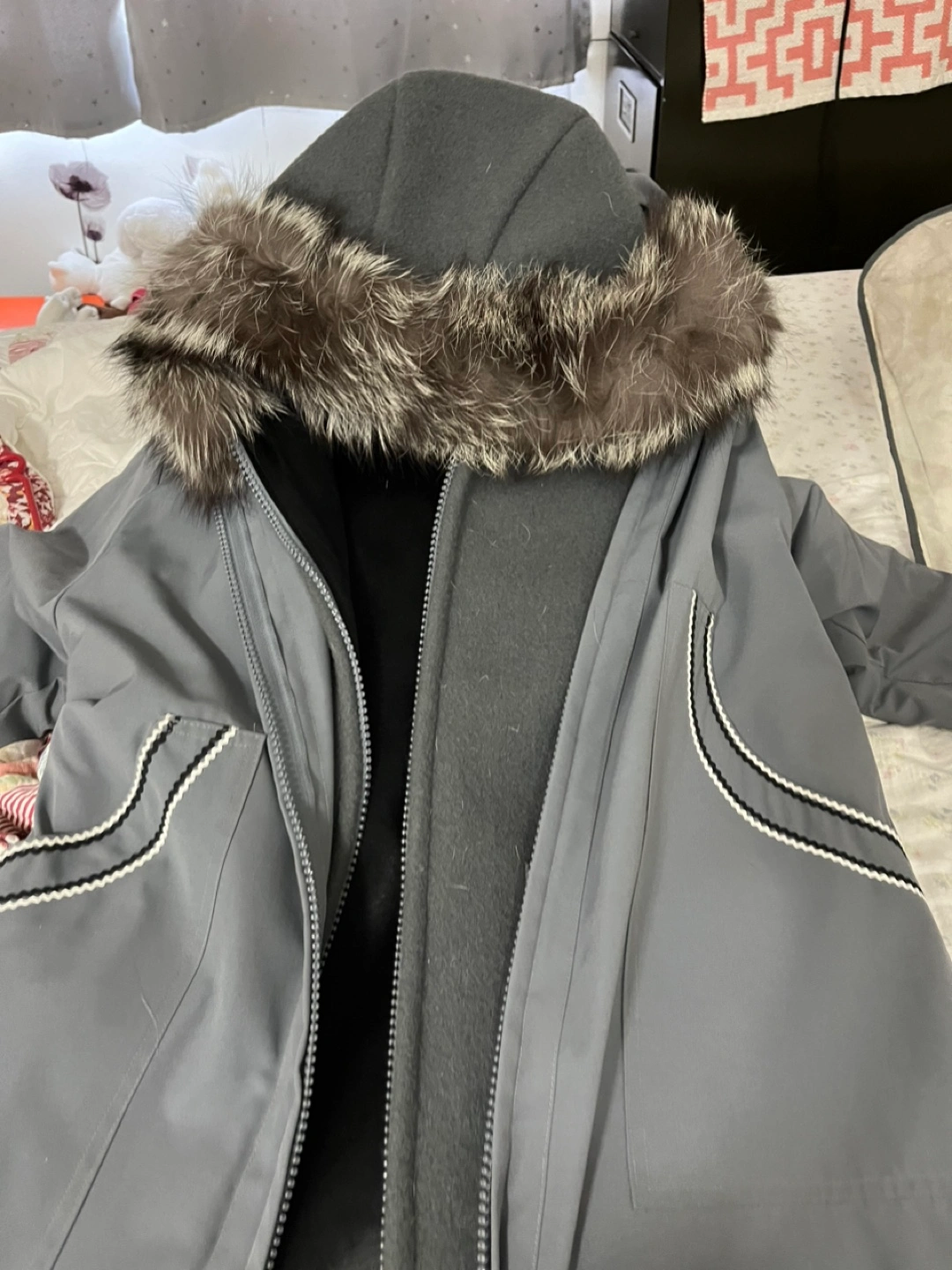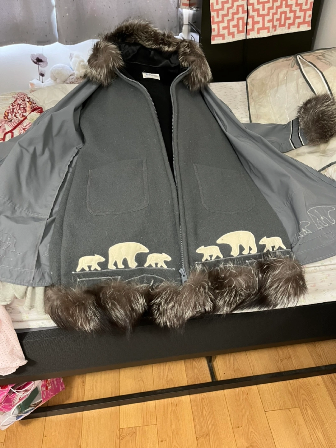 Selling my parka has real fix trim on bottom cuffs and hood. Like new condition. 600.00 OBO
