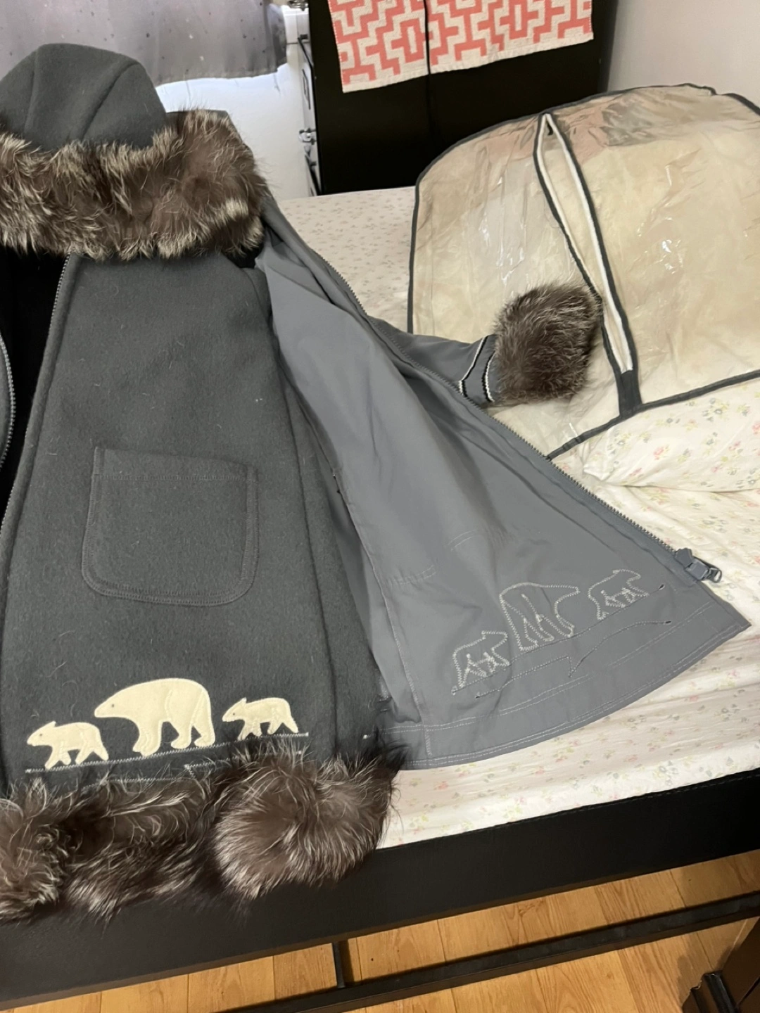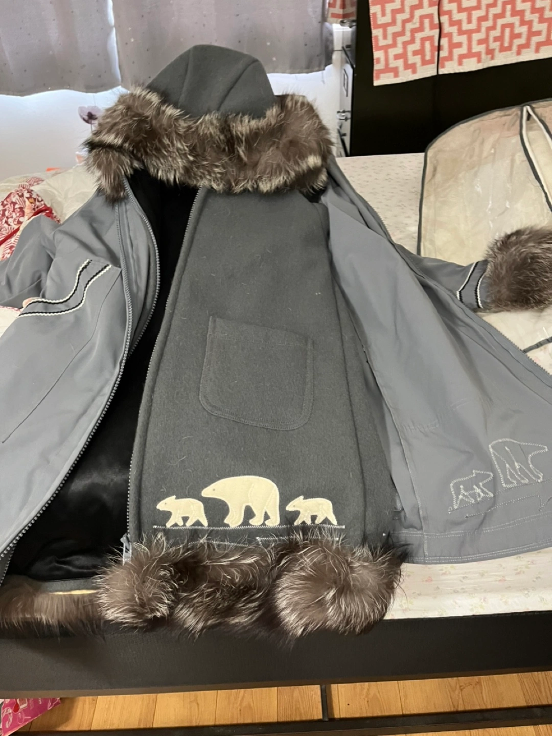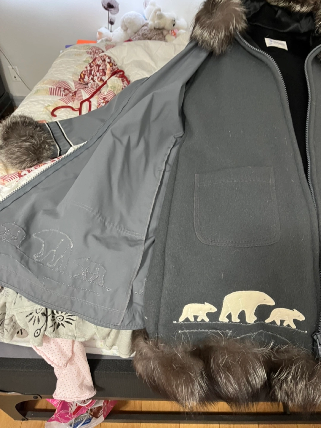 Selling my parka has real fix trim on bottom cuffs and hood. Like new condition. 600.00 OBO