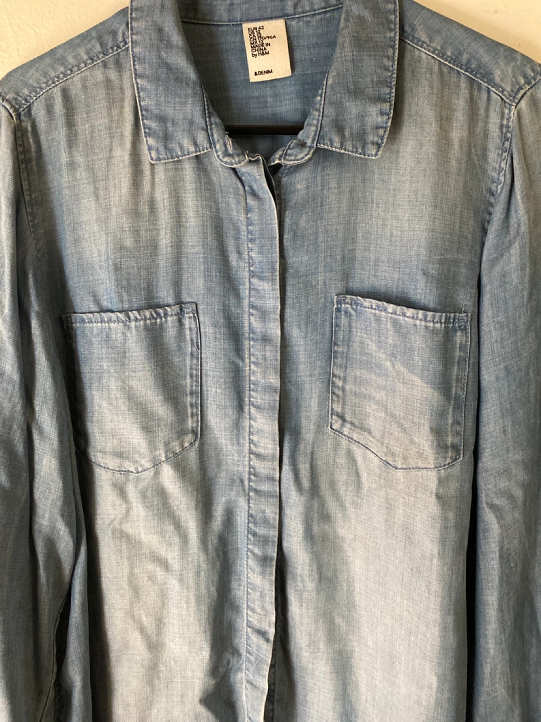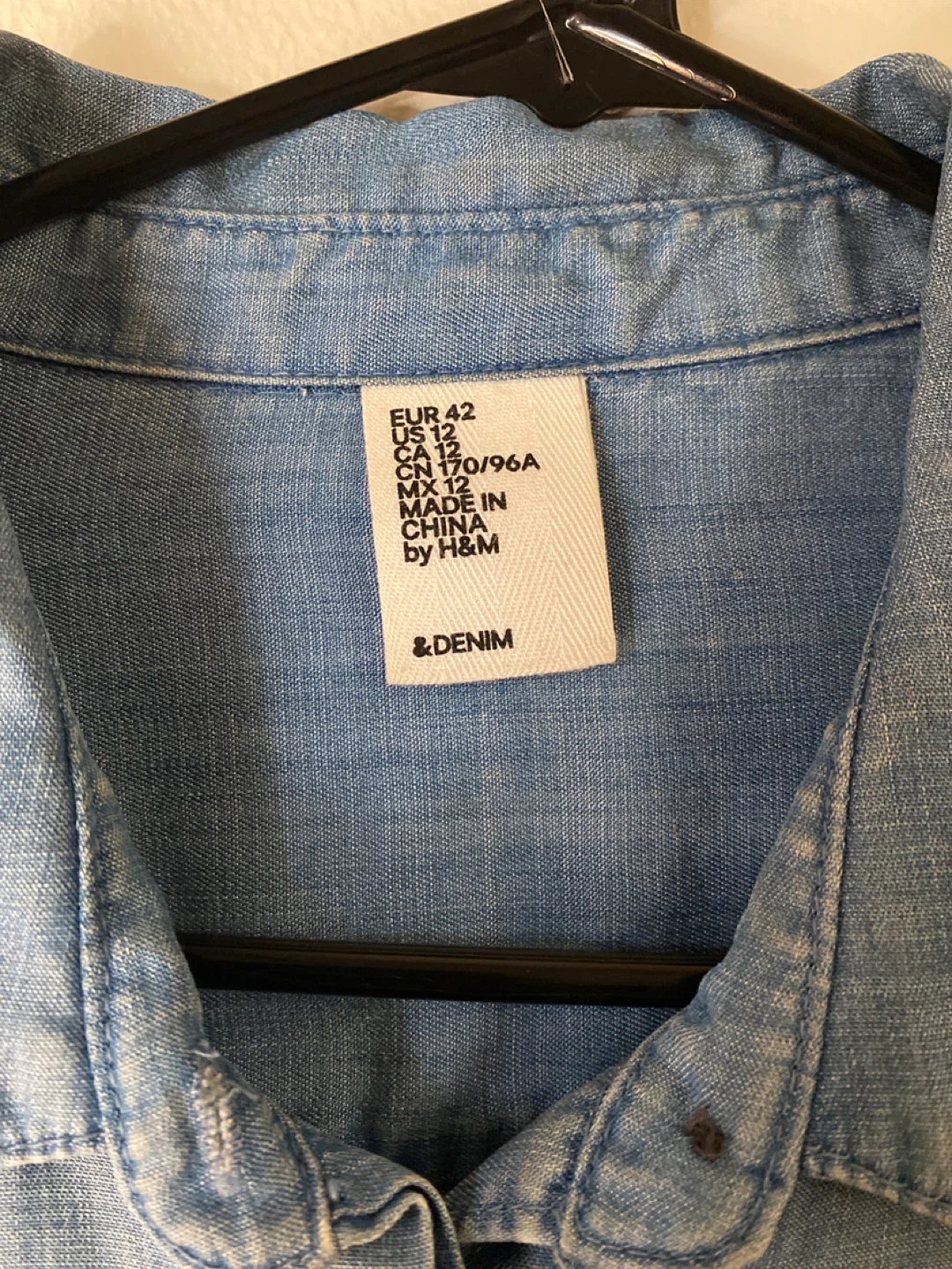 Buy & SellH&M Denim Shirt - Size 12H&M Denim Shirt - Size 12Trade🔎 In Search Of (ISO):Preferably another denim shirt or brown sandalsLearn about tradesThis is an H&M &DENIM blue chambray shirt. It's a size 12 US. Features two chest pockets and button closures.ConditionGoodSize12BrandH&MWHERE TO MEET11207View MapSELLERverifiedNephyEast New York750 reviews0 chats·0 favorites·10 viewsSEND CHAT TO SELLERHi Nephy! I’m interested in your listing.Hi Nephy! I’m interested in your listing.Get the Karrot app to chatSign In to chat