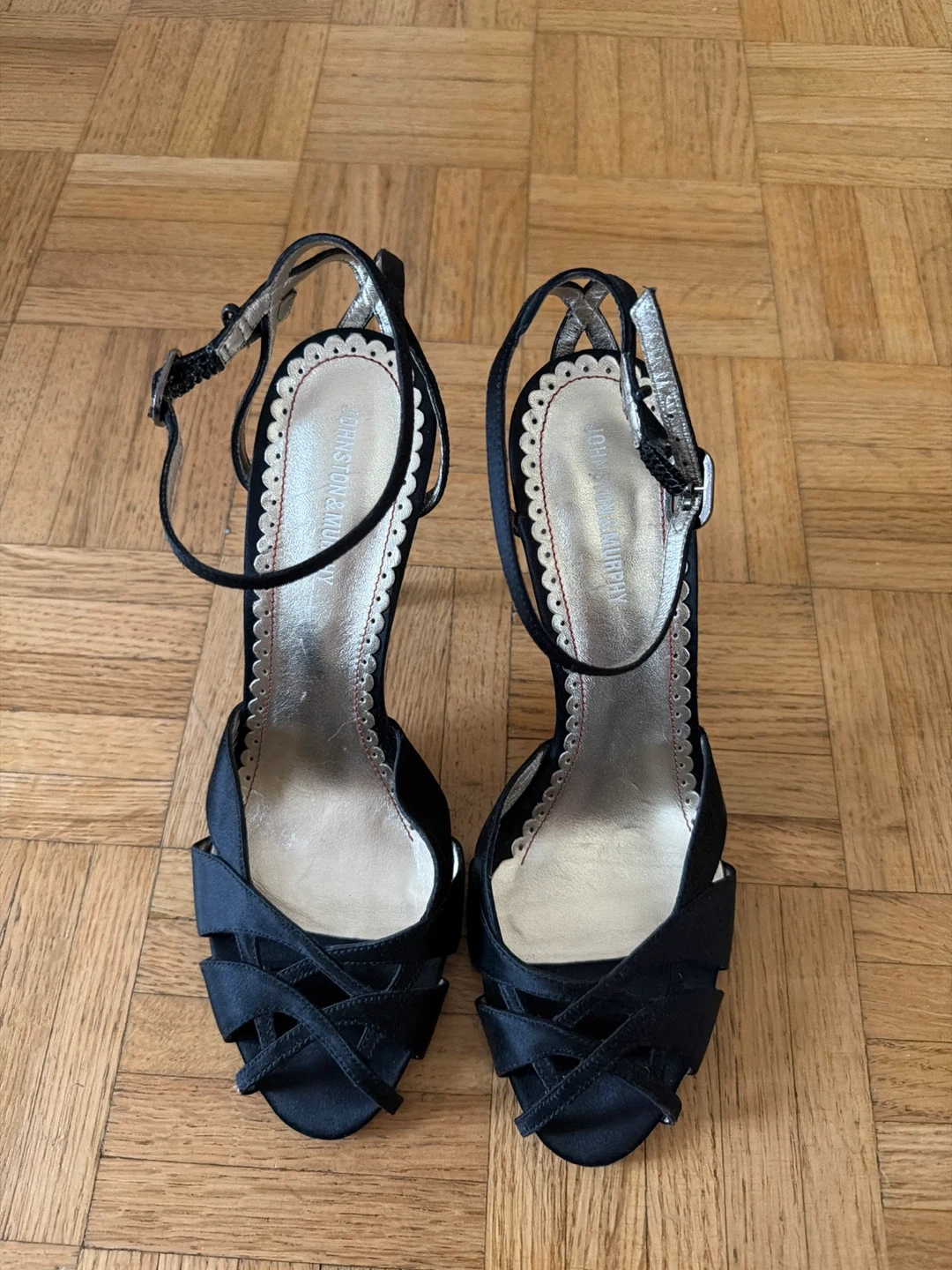 Jonathon & Murphy Black Satin Strappy Heels - Size 8