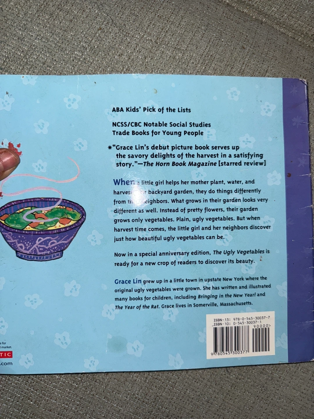 Giving away a children's book "The Ugly Vegetables" by Grace Lin. It's about a little girl who helps her mother plant, water, and harvest their backyard garden. The book is a special anniversary edition. Perfect for young readers! Smoke Free home.