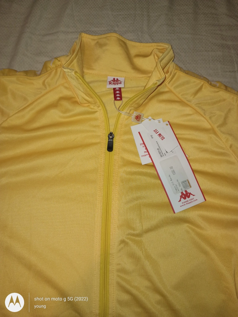Selling a Kappa track jacket in a vibrant yellow colour. It's a slim fit and originally bought for $120.00. Perfect for adding a pop of colour to your wardrobe!