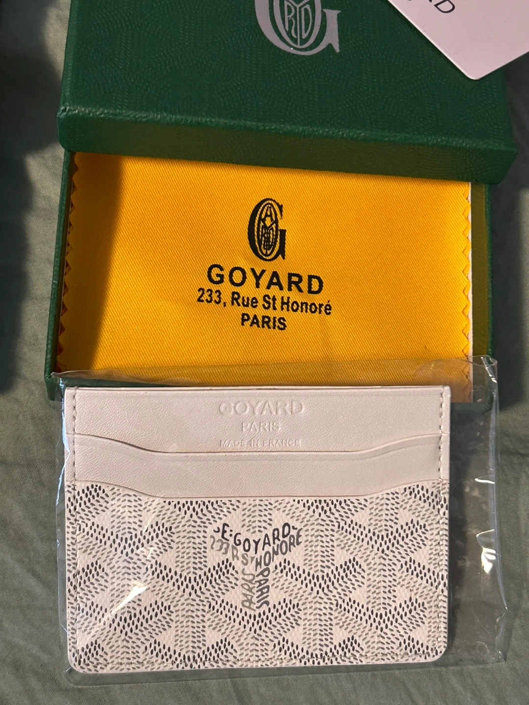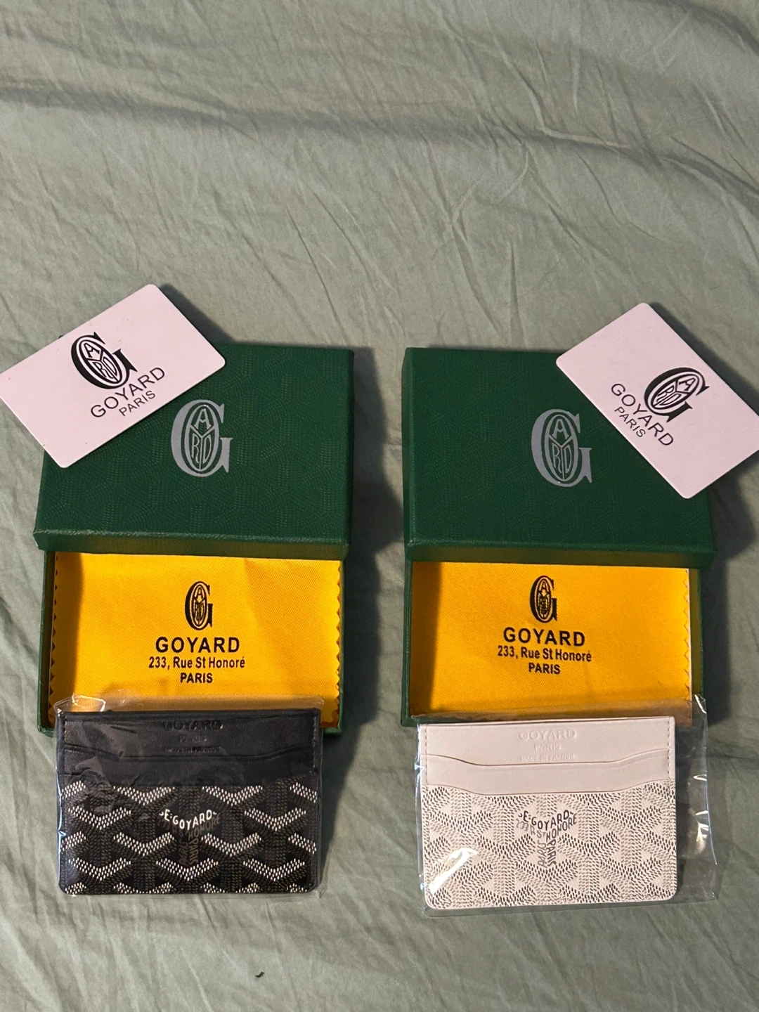 2 new Goyard card holders in white or black. Made in France. Comes with original box, cloth, card, dust bag and the cardholder