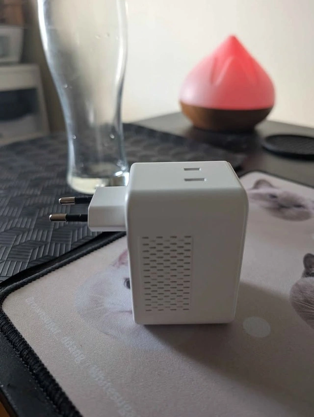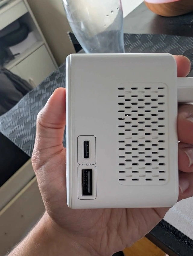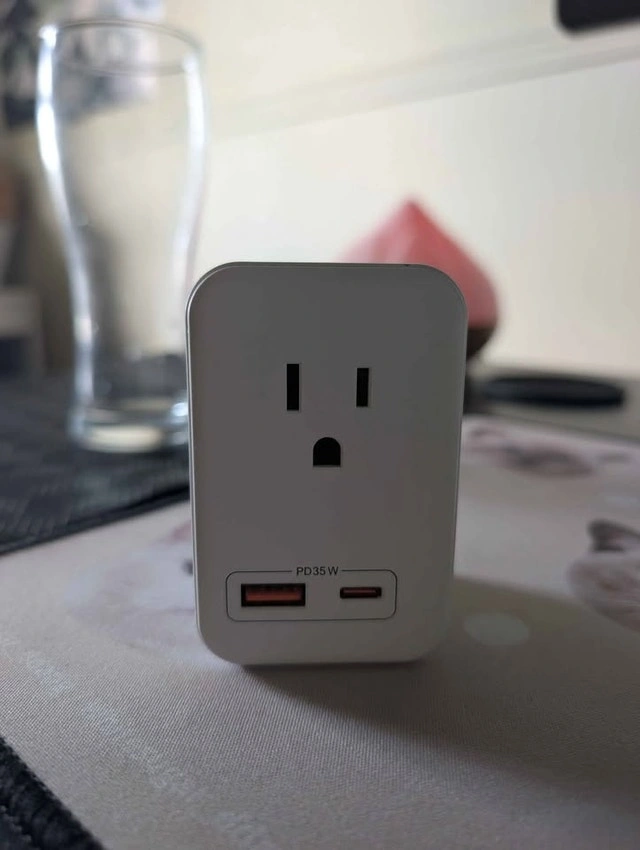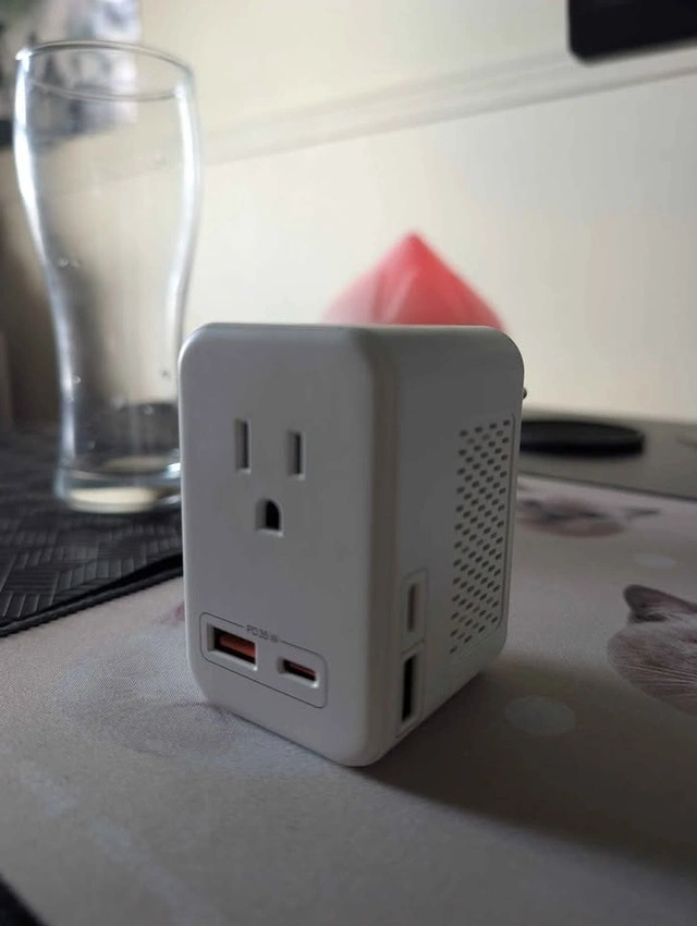 Never used, essentially brand new. Converts voltage from 220 down to 110! Not your average travel adapter. Sturdy with 2 USB C ports and 2 USB A ports as well.