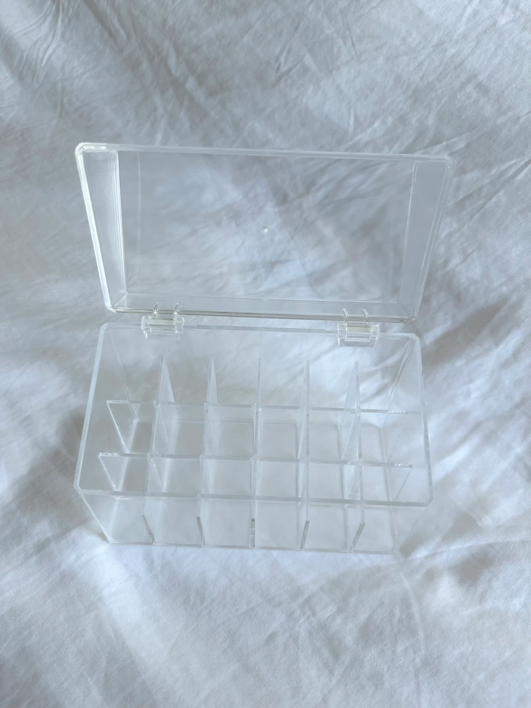 New, unused clear acrylic makeup organizer. Perfect for your lipsticks and other cosmetics.