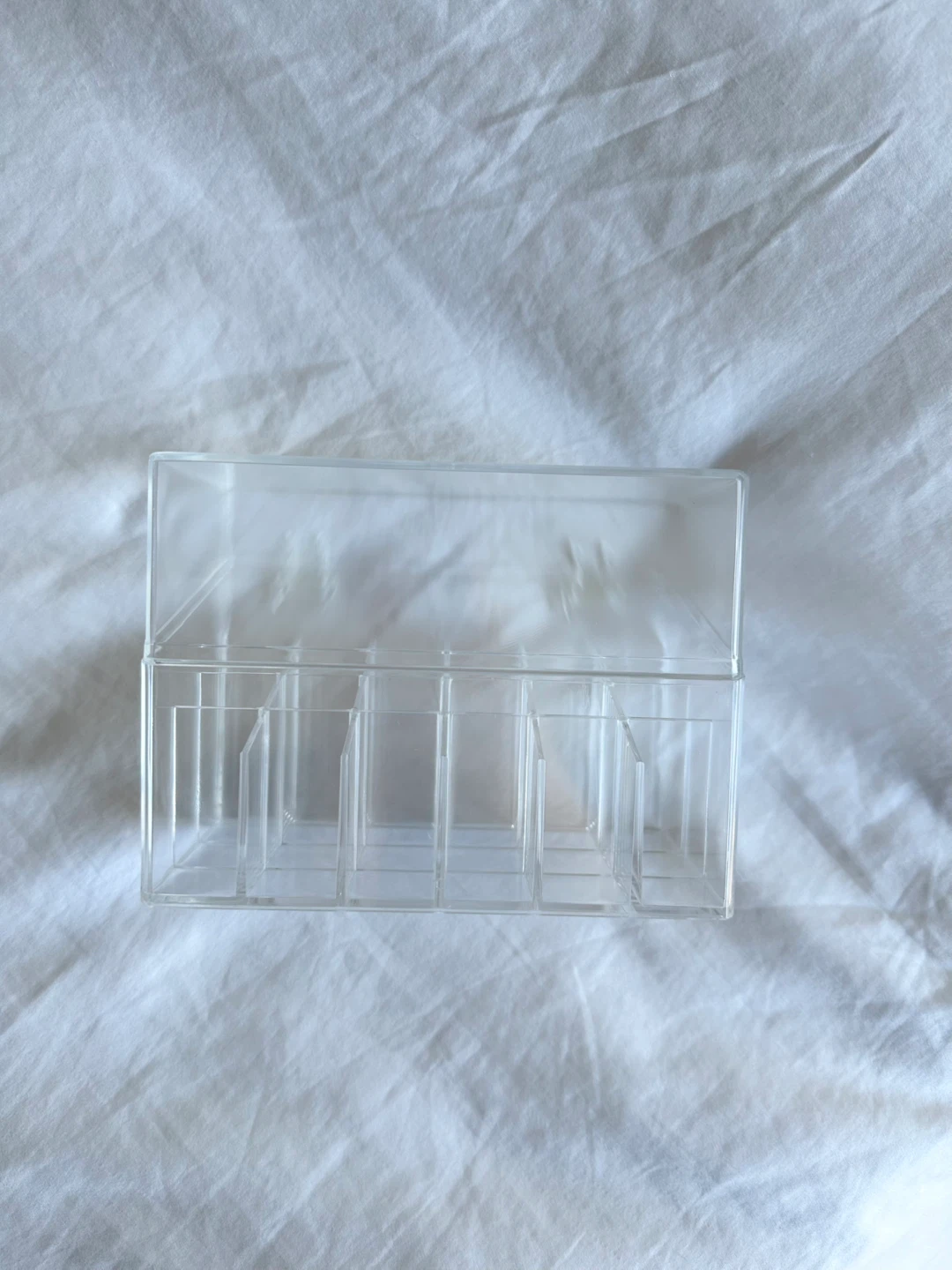 New, unused clear acrylic makeup organizer. Perfect for your lipsticks and other cosmetics.