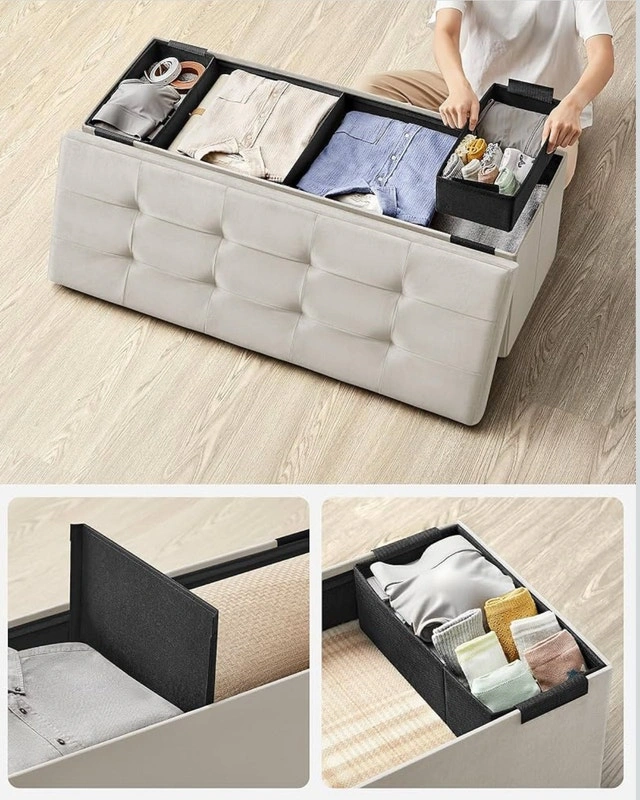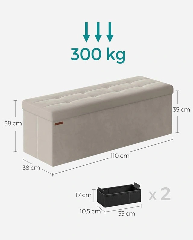 Folding Storage Bench/Ottoman, 300kg Capacity, Cream