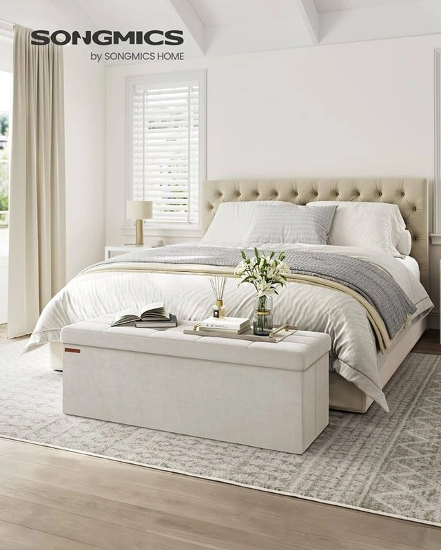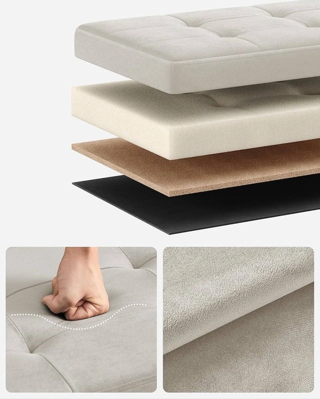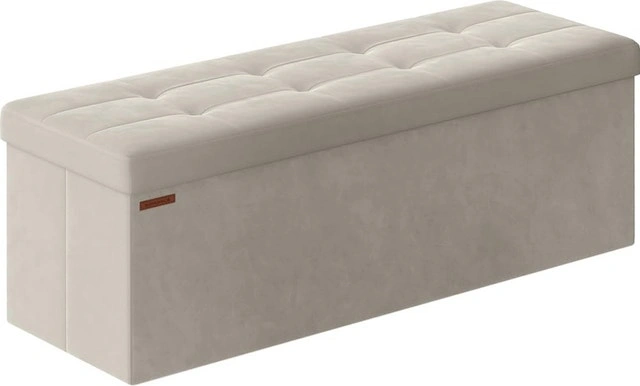 Folding Storage Bench/Ottoman, 300kg Capacity, Cream