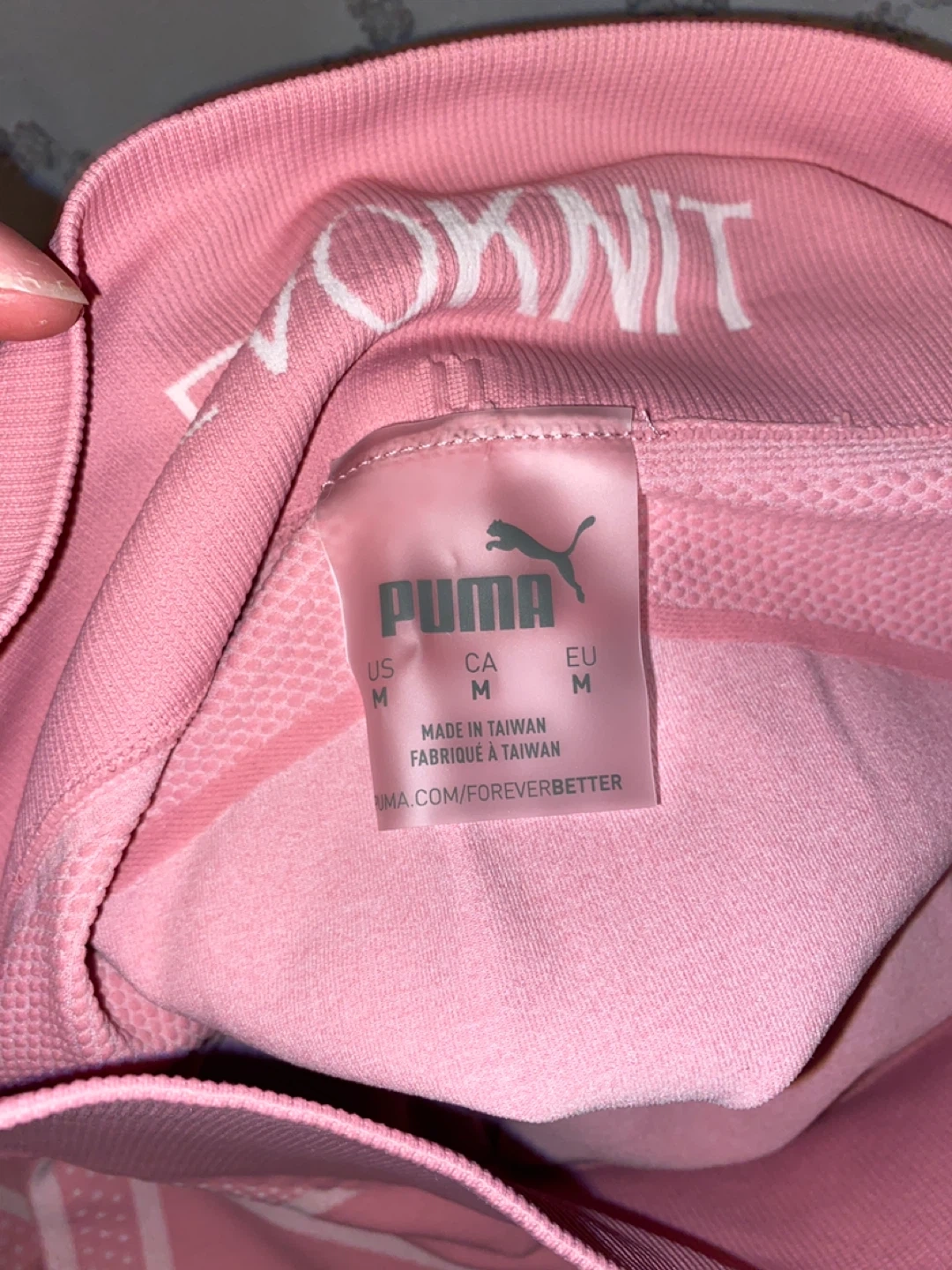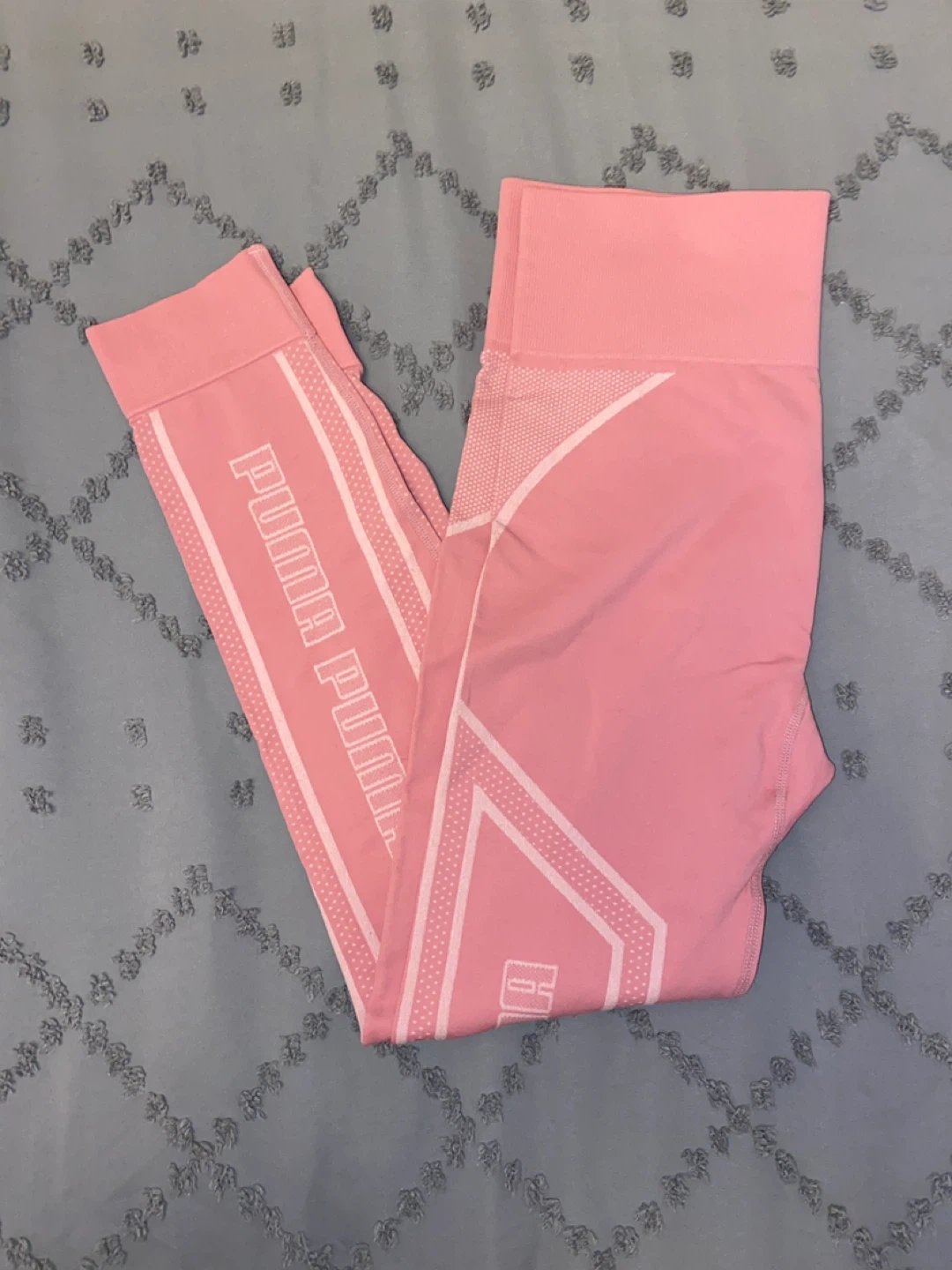 Selling a pair of Puma leggings in a lovely pink colour. They are a size medium and in great condition. The Puma logo is featured on the side of the legs!