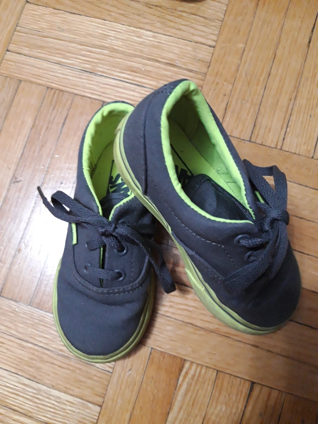 Here are some shoes for kids! They're a cool grey colour with green accents. Great for everyday wear!Vans(7)Toddler,Vand(11)Kids,Adidas(13)Kids,Nike Air(13)Kids,Nike(13C),Nike Tiempox(1Y)Kids,Nike(1.5Y)Kids,AND(13)Kids,.Take All for $20
