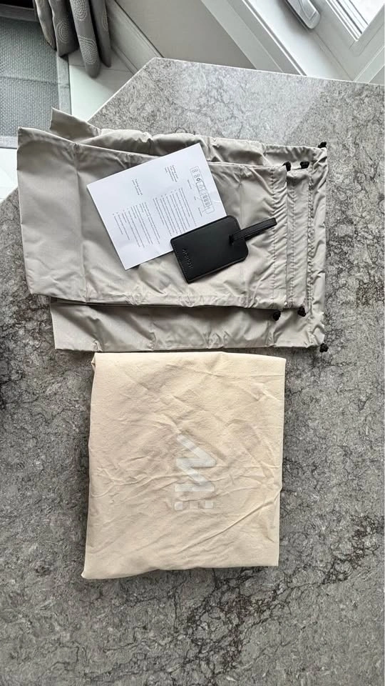 - Includes anti-microbial laundry bag, two shoe bags, and vegan leather luggage tag.