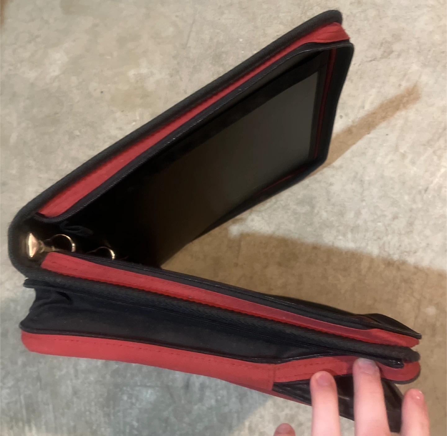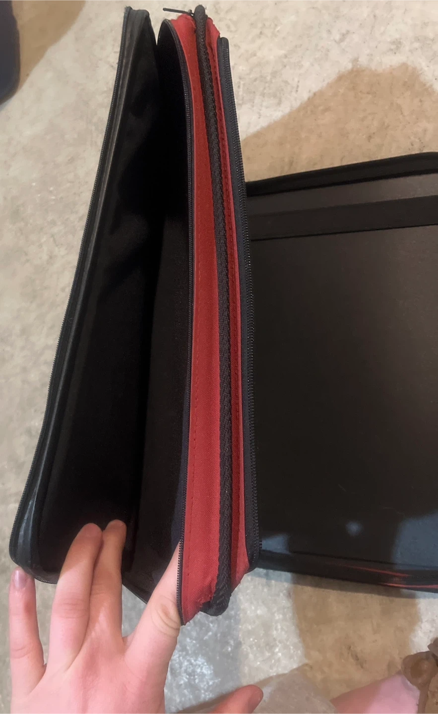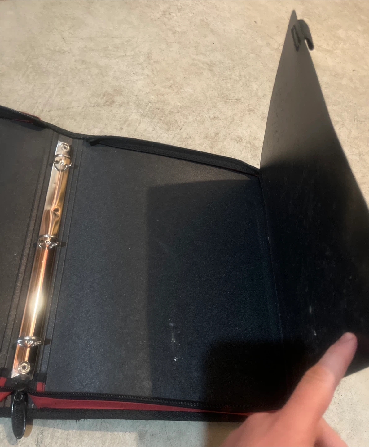 This Five Star folio binder is in a vibrant red colour. It's made of durable fabric with a zippered closure to keep your papers secure. Inside, you'll find standard binder rings and protective sleeves.