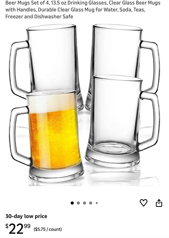 Buy & SellNew Beer Mugs Set of 4, 13.5 oz Drinking GlassesNew Beer Mugs Set of 4, 13.5 oz Drinking Glasses$10Sealed Brand New. Pick up at studio phenomenon 901 Atlantic Ave, Brooklyn 11238.ConditionNewWHERE TO MEETCheck LocationView MapSELLERverifiedChristineClinton Hill2209 reviews0 chats·0 favorites·1 viewsSEND CHAT TO SELLERHi Christine! I’m interested in your listing.Hi Christine! I’m interested in your listing.Get the Karrot app to chatSign In to chat