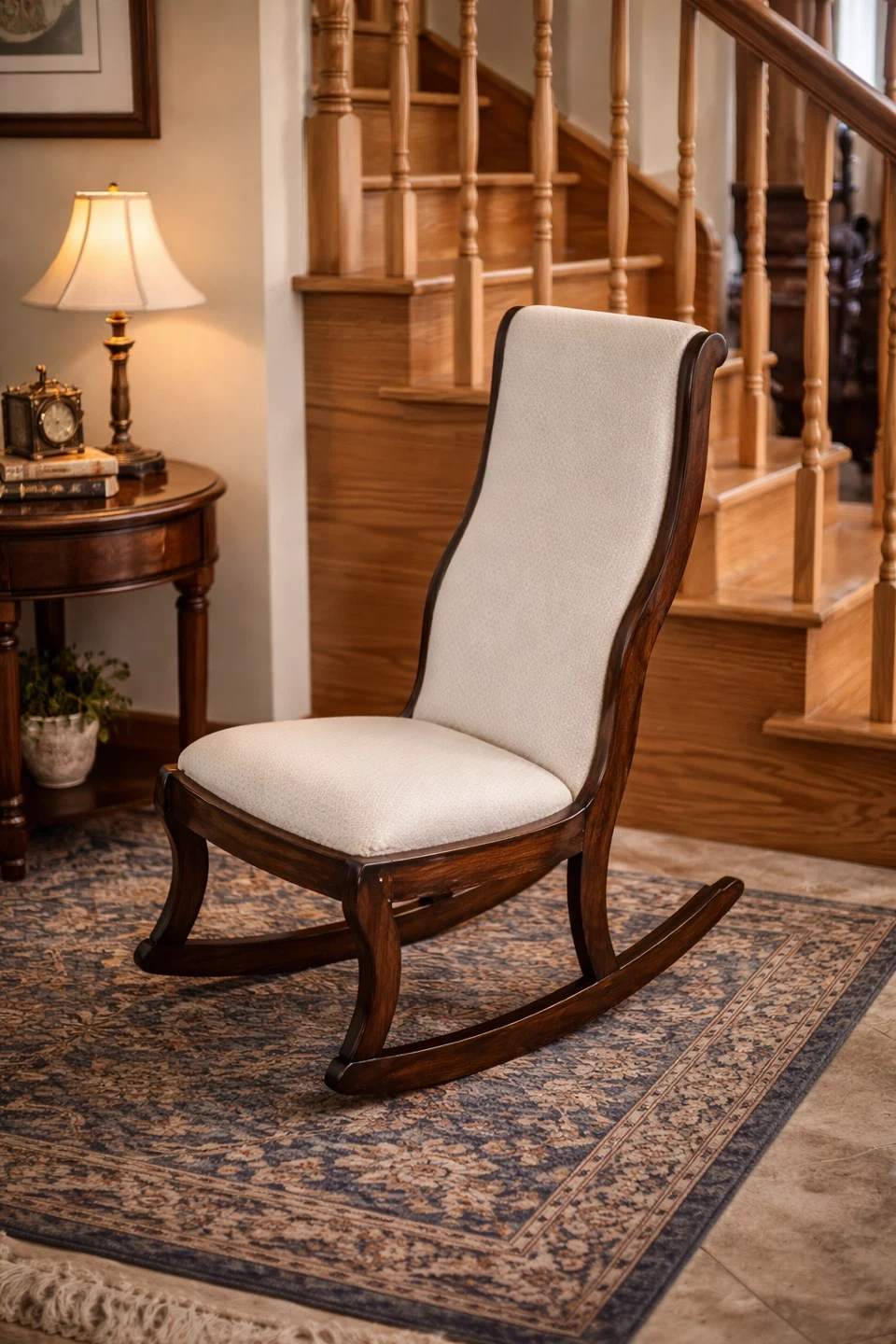 Wooden Rocking Chair with Cream Cushion