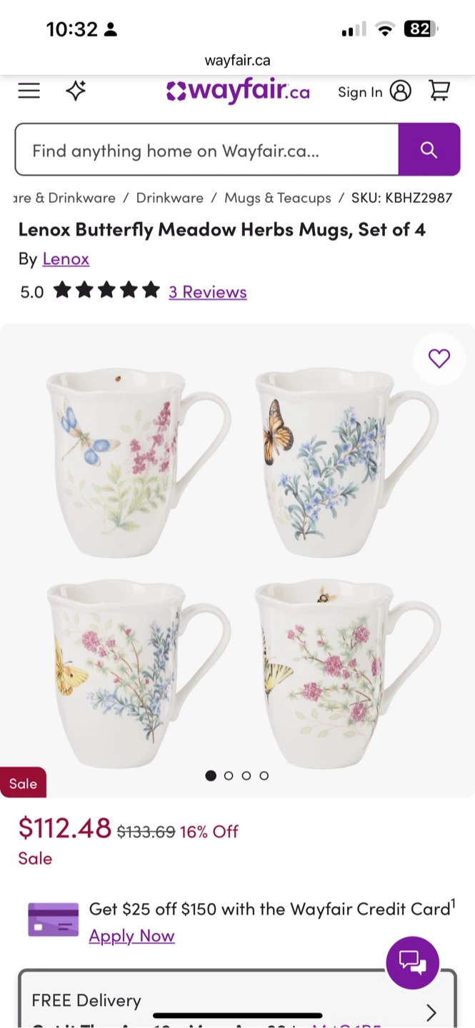 Buy & SellLenox Butterfly Meadow Herbs Mugs - Set of 4Lenox Butterfly Meadow Herbs Mugs - Set of 4$55Set of four Lenox Butterfly Meadow Herbs mugs. Each mug features a unique floral and butterfly design.WHERE TO MEETWalkers and Dundas BurlingtonView MapSELLERSab BMillcroft252 reviews0 chats·1 favorites·4 viewsSEND CHAT TO SELLERHi Sab B! I’m interested in your listing.Hi Sab B! I’m interested in your listing.Get the Karrot app to chatSign In to chat