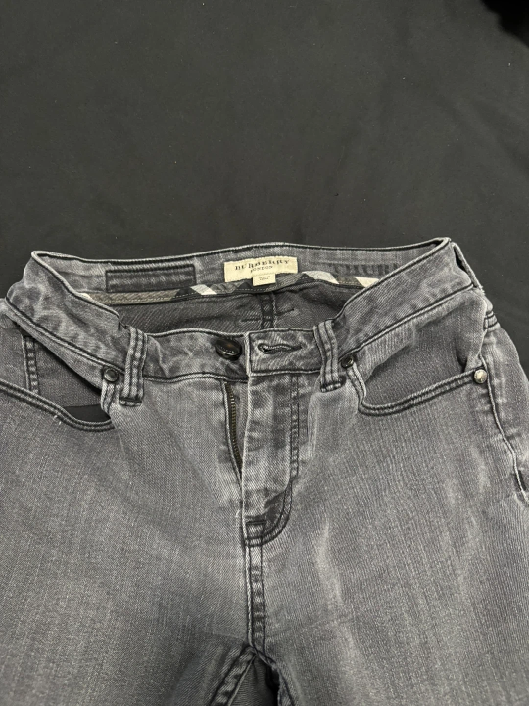 These are Burberry London skinny jeans in a grey wash. They're made from a comfortable denim material. These jeans are a stylish addition for everyday wear! Waist 26, 34 leg. Pick up in the Northend.