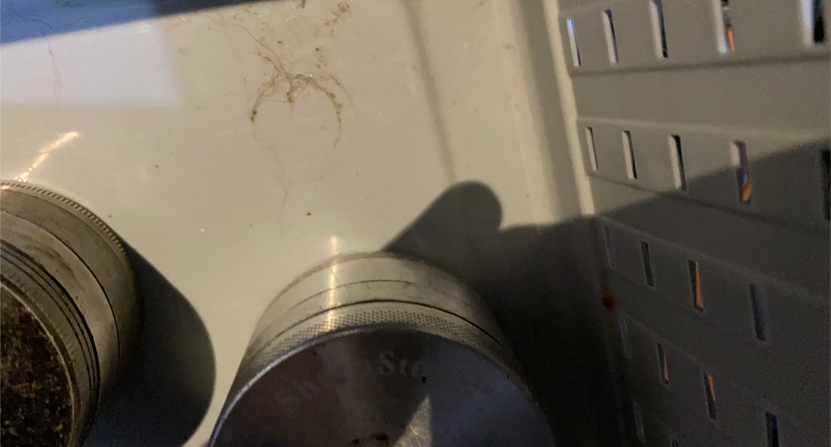 A Sharp Stone herb grinder. It's made of metal with sharp teeth for effective grinding. The top part has a knurled edge for grip.