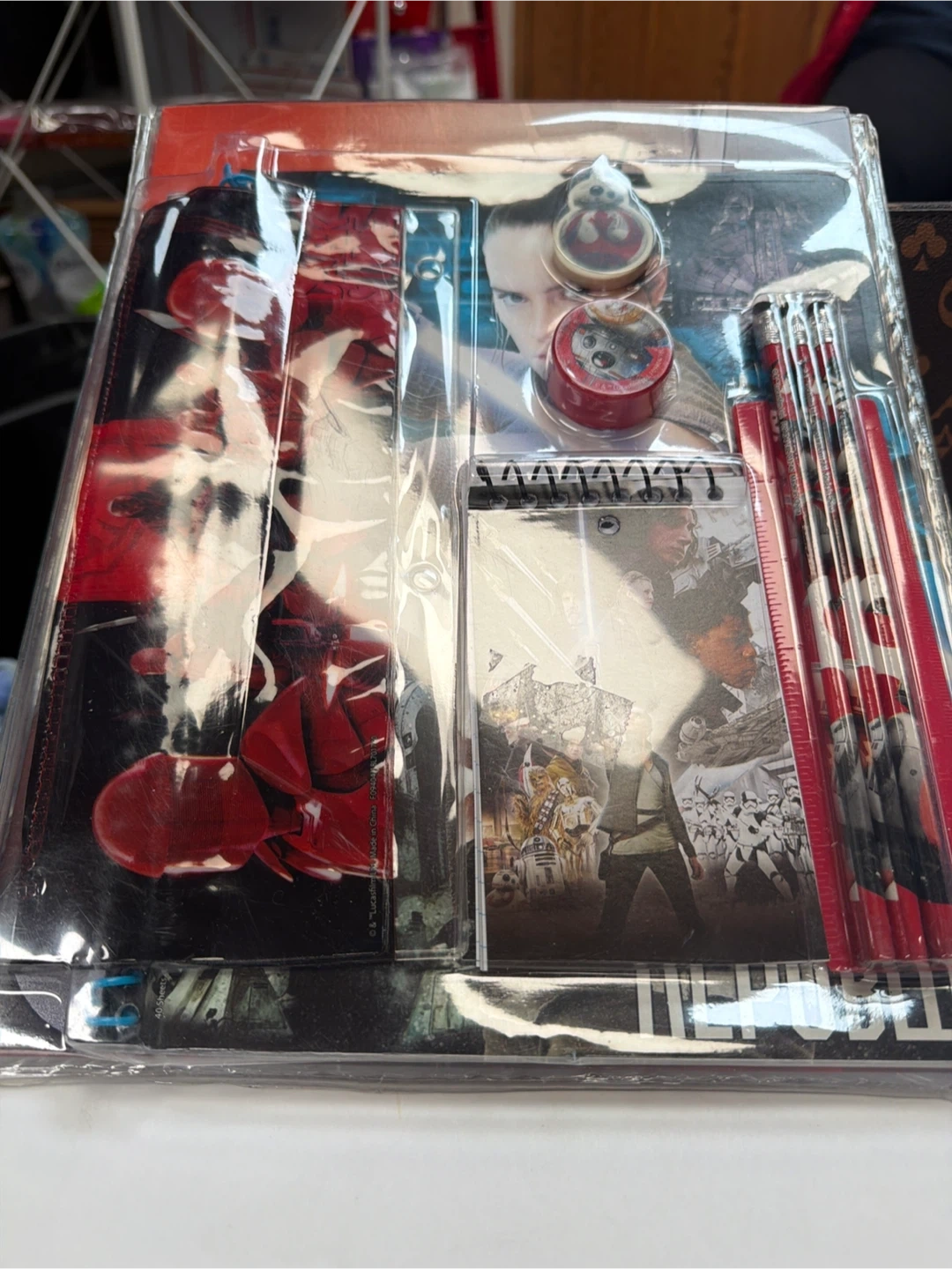 This stationery set features characters from Star Wars: The Force Awakens. It includes pencils, erasers, and a notebook. Perfect for any young Star Wars fan!