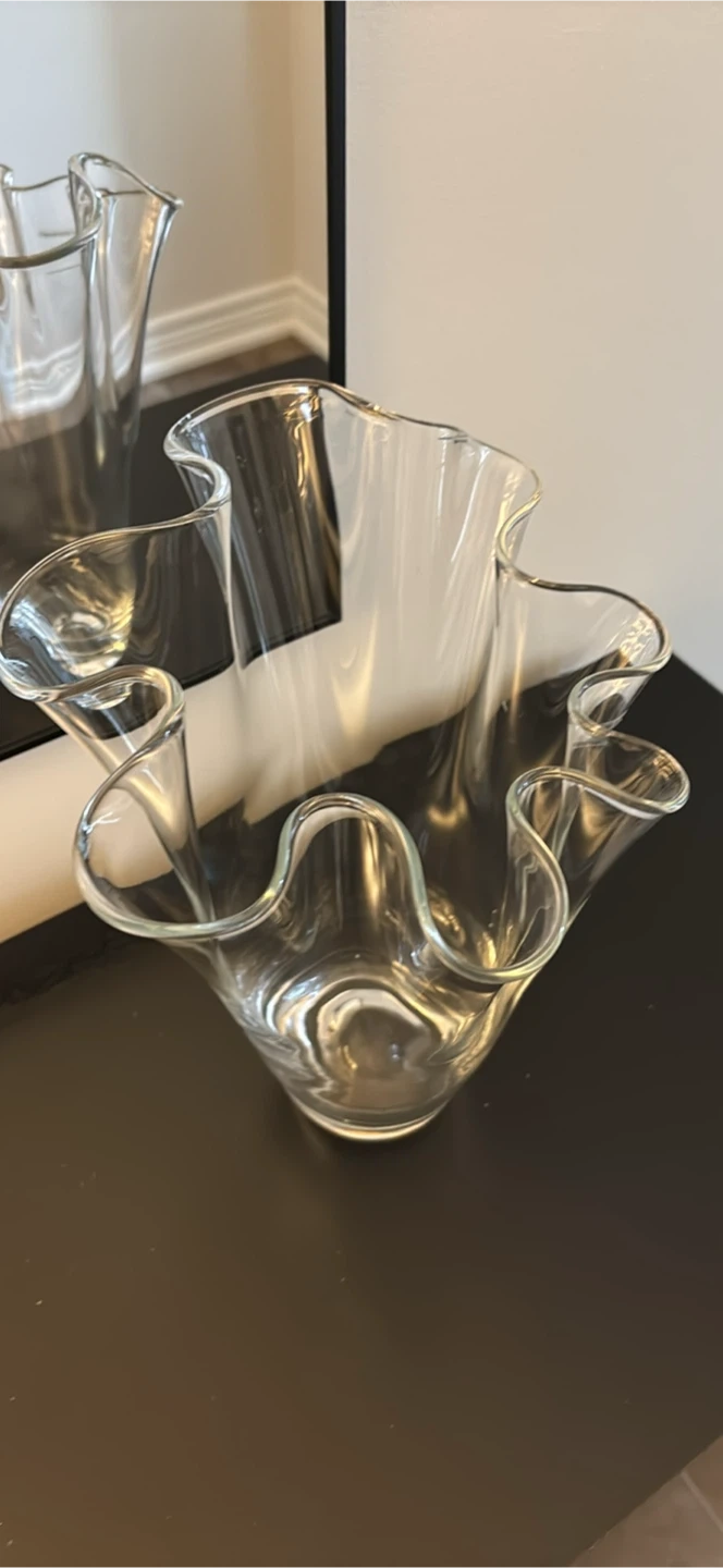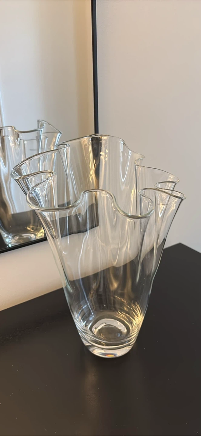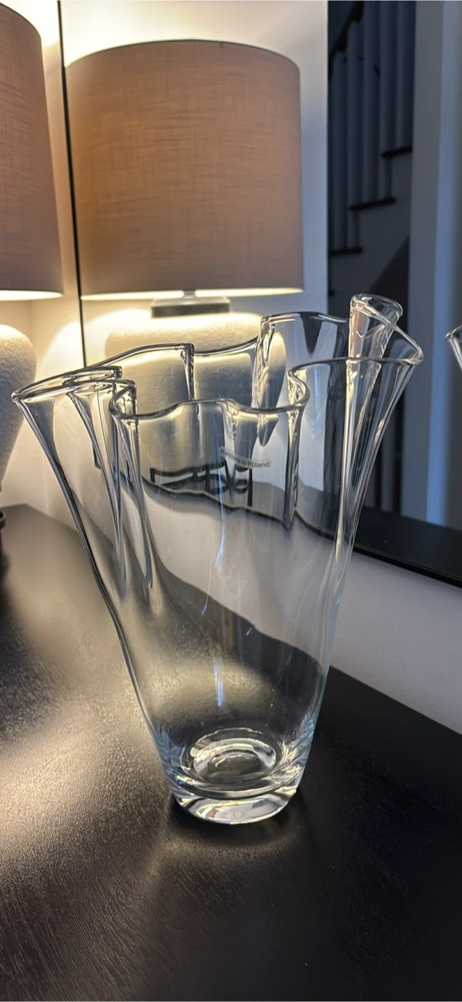 Beautiful clear glass vase, handmade in Poland! It's a lovely piece to add to your home decor, perfect for displaying flowers or as a standalone art piece