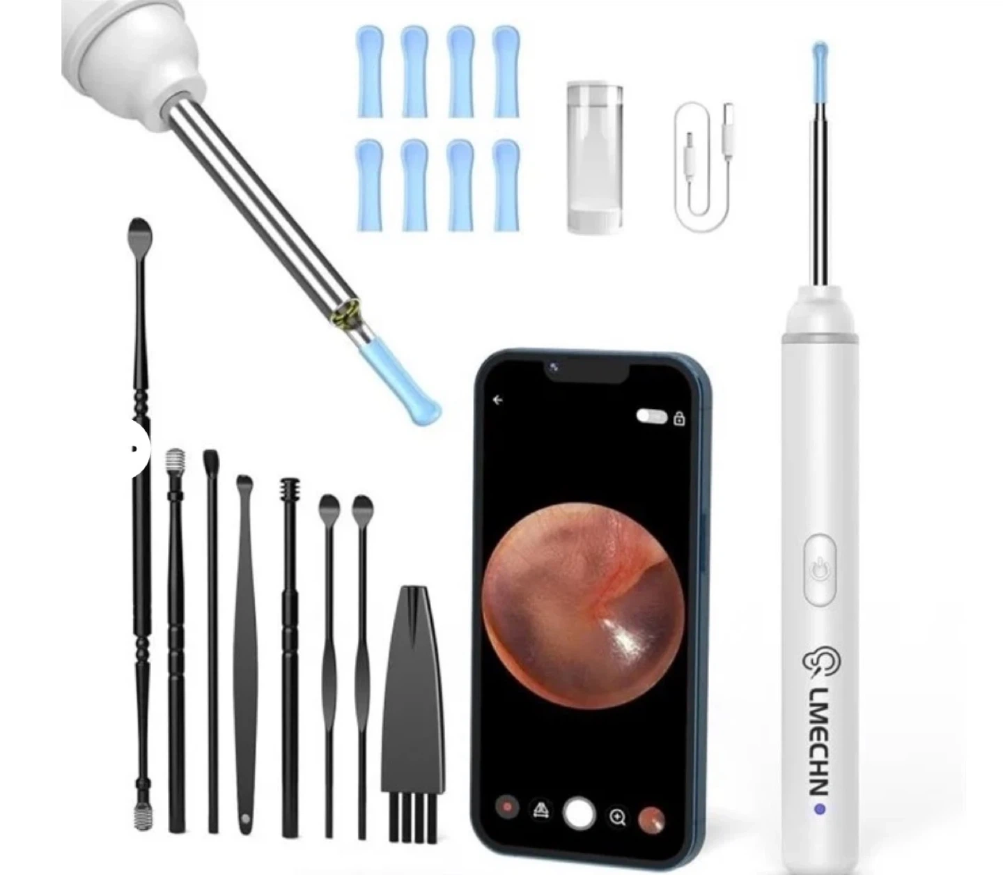 This LMCHN ear wax removal tool comes with a 1920P HD camera, letting you clearly illuminate and see the inside of the ear canal. It's IP67 waterproof and easy to clean. The kit includes multiple ear tips and cleaning accessories.