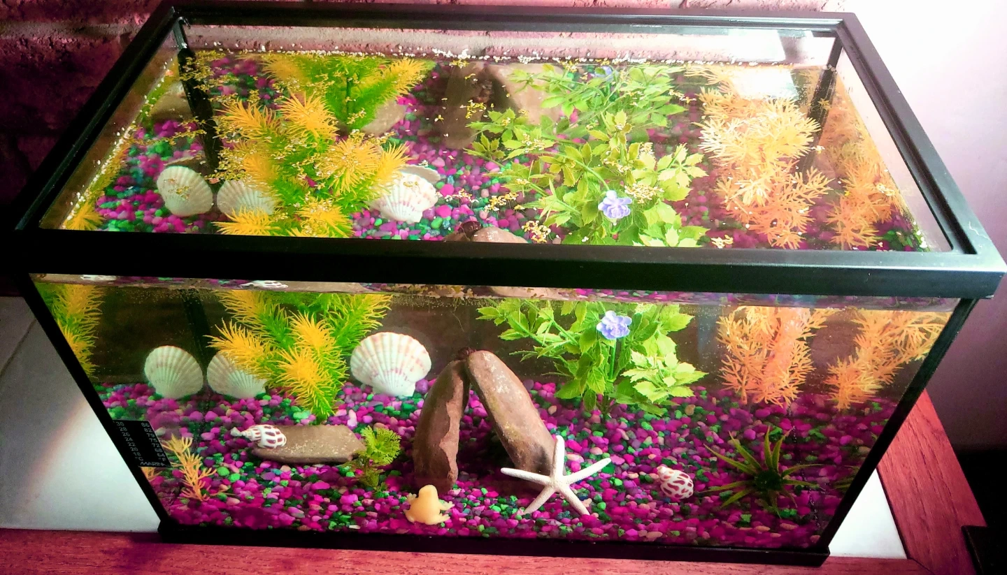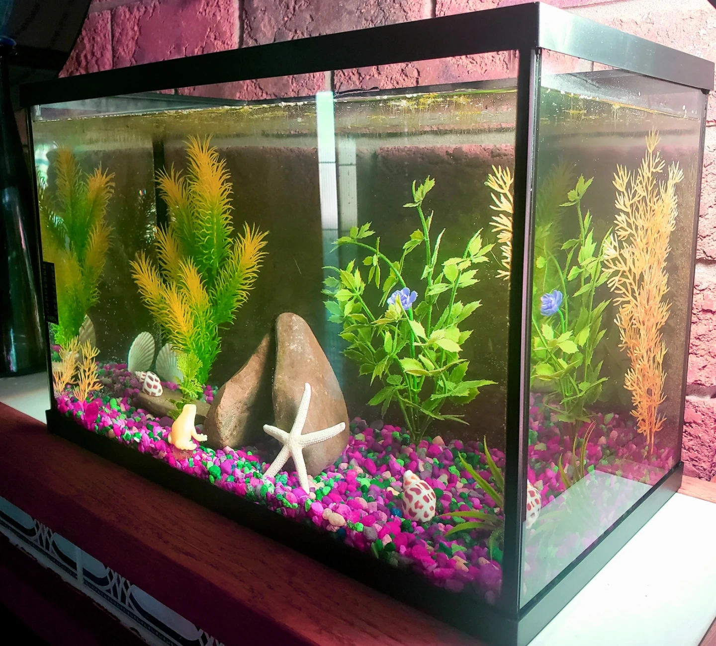 Beautifully setup tank that includes all the Accessories, Decor, and even Real Plants. All the prep work is done here already, so just take it home and enjoy right away.