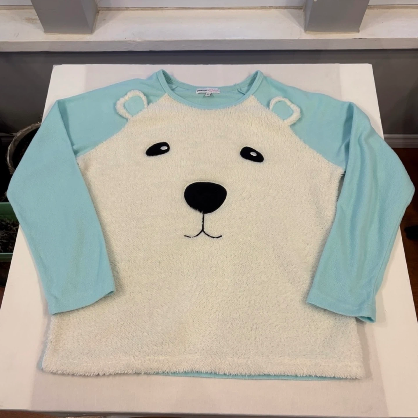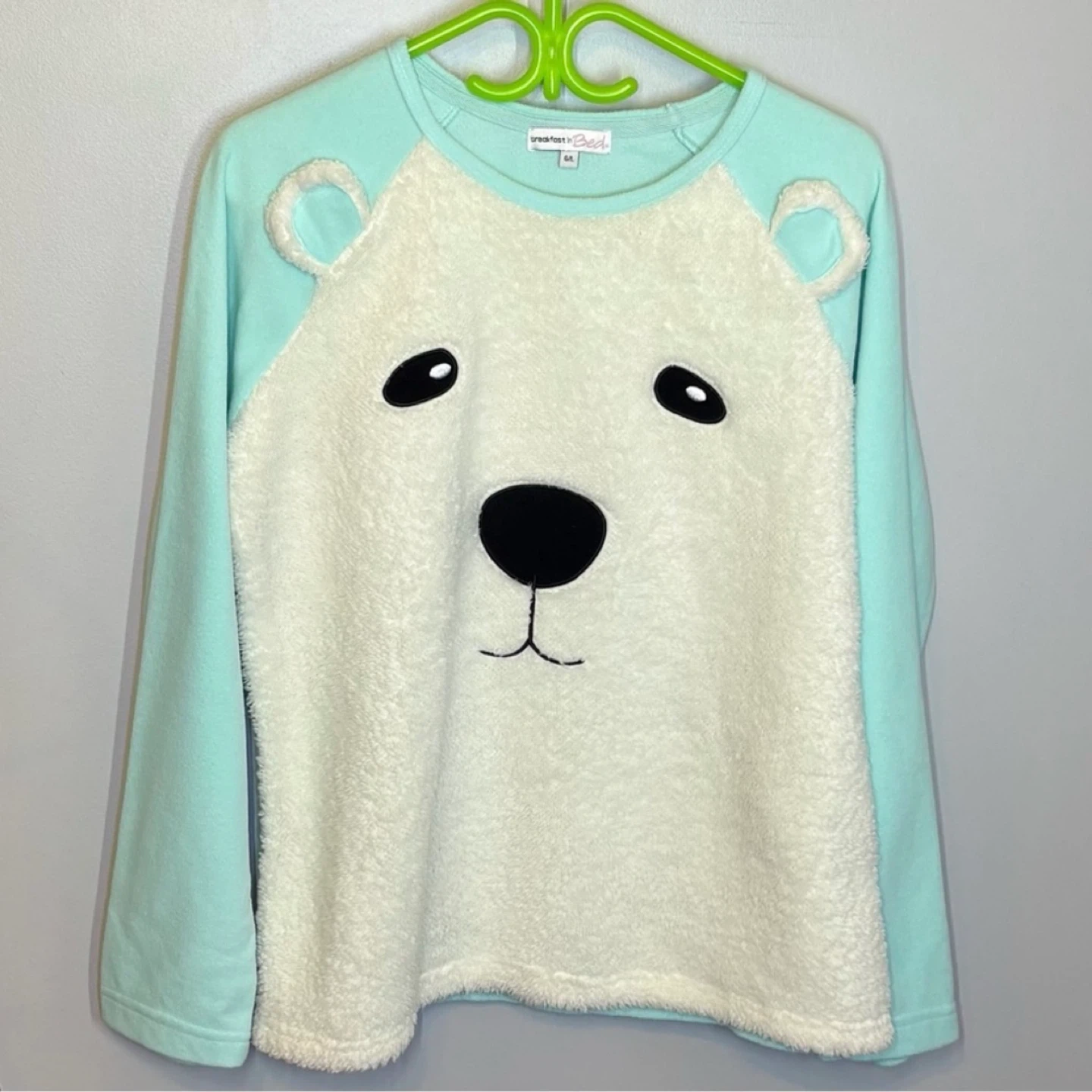 Adorable Breakfast in Bed Polar Bear Fleece Pajama Top Size L