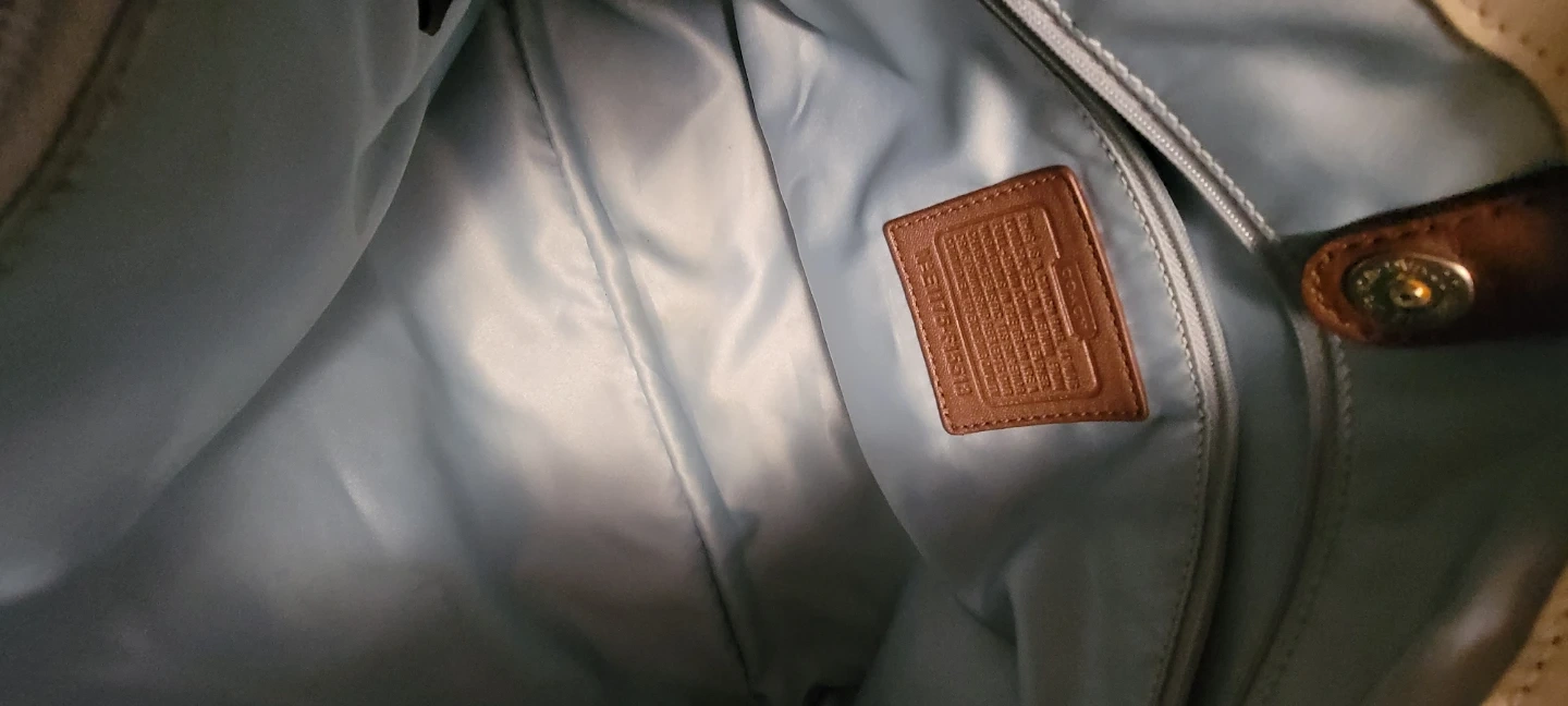 Selling a Coach satchel in cream and brown leather. It's in good condition and ready for a new owner! The bag features brown leather accents and a shoulder strap. Bag has 3 compartments.
