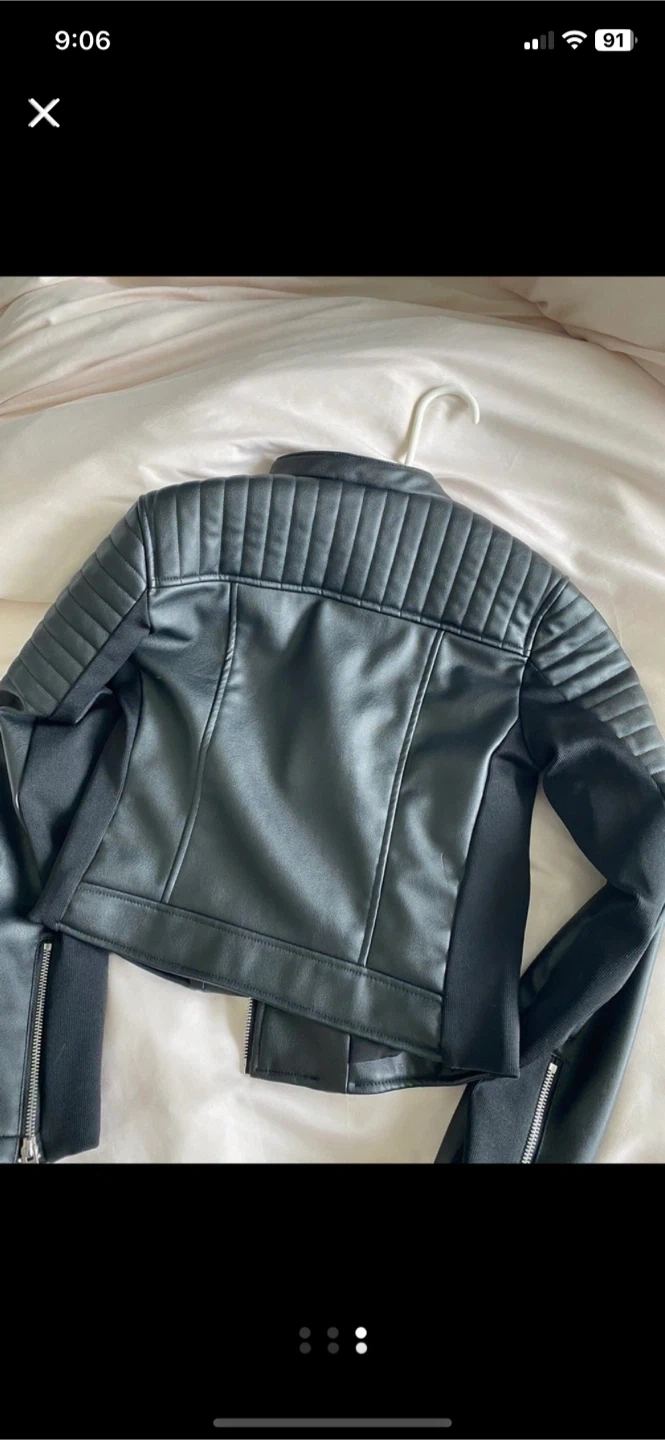 Selling a Zara women’s black faux leather jacket in size XS. It's in great condition and ready for a new home!