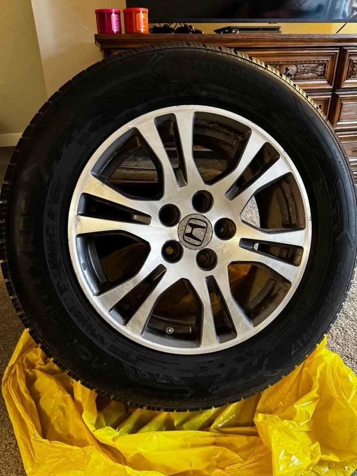 Selling a complete set of 4 original (OEM) Honda alloy wheels mounted on Nokian Entyre C/S All-Season tires. These came off a Honda (Odyssey/Pilot) and are ready for a new home.