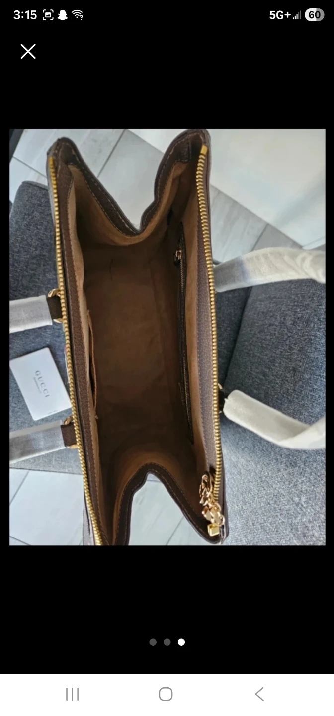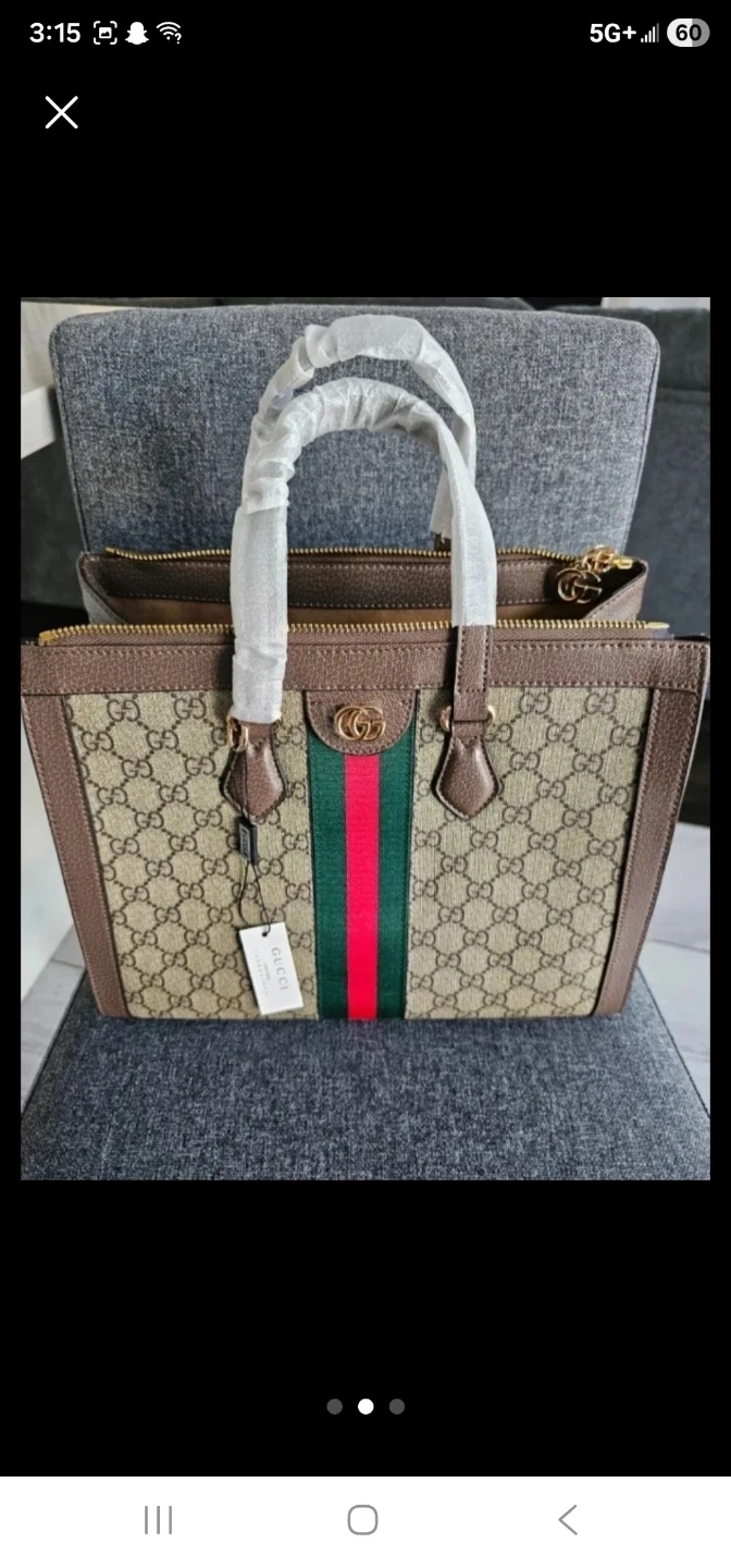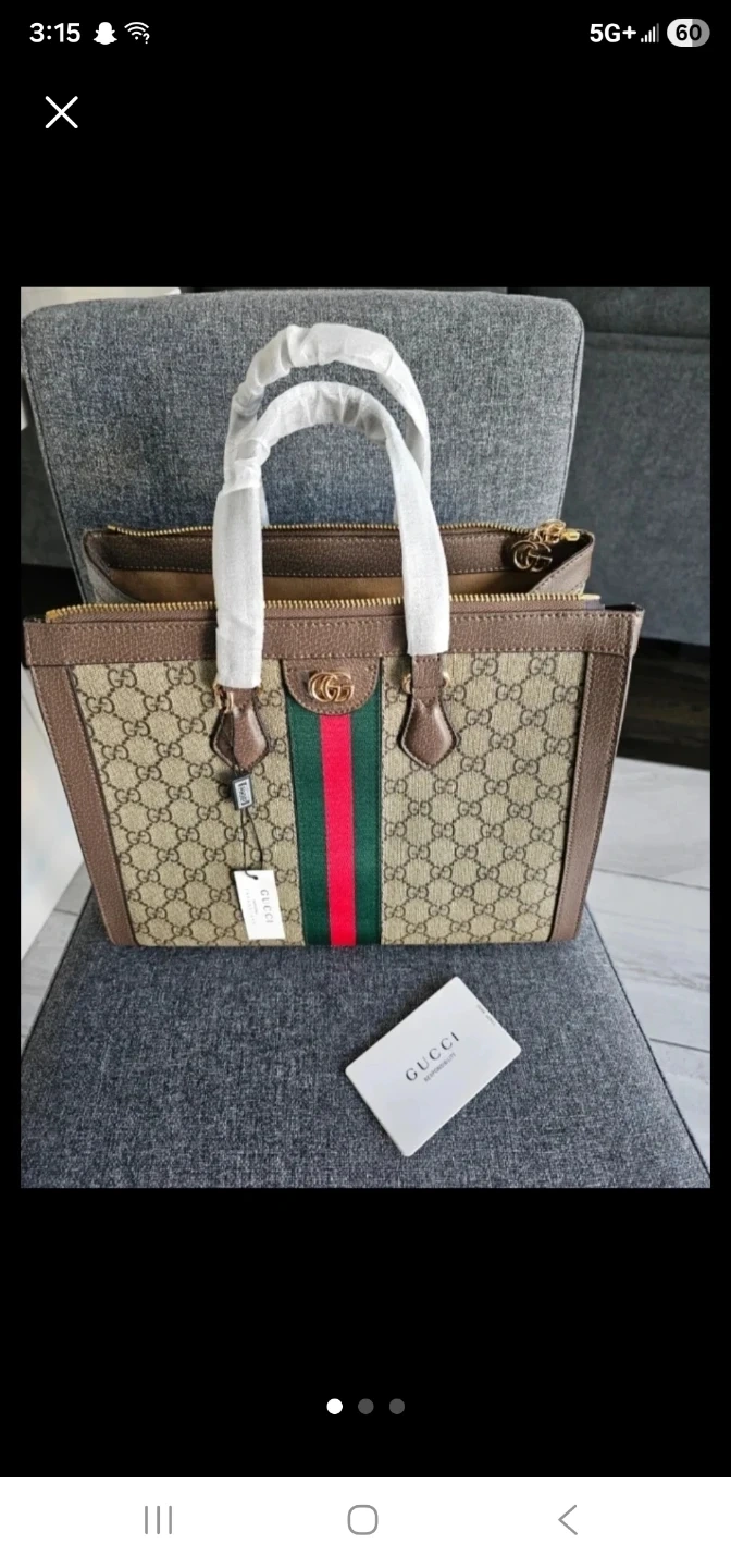 This Gucci tote bag features the iconic GG Supreme canvas with brown leather trim. It has a zip-top closure and includes a Gucci card. Perfect for everyday use!