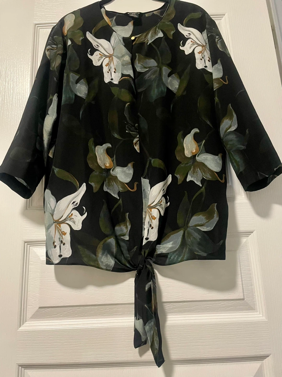 Club Monaco Black Floral Silk Tie-Front Blouse Size M/M