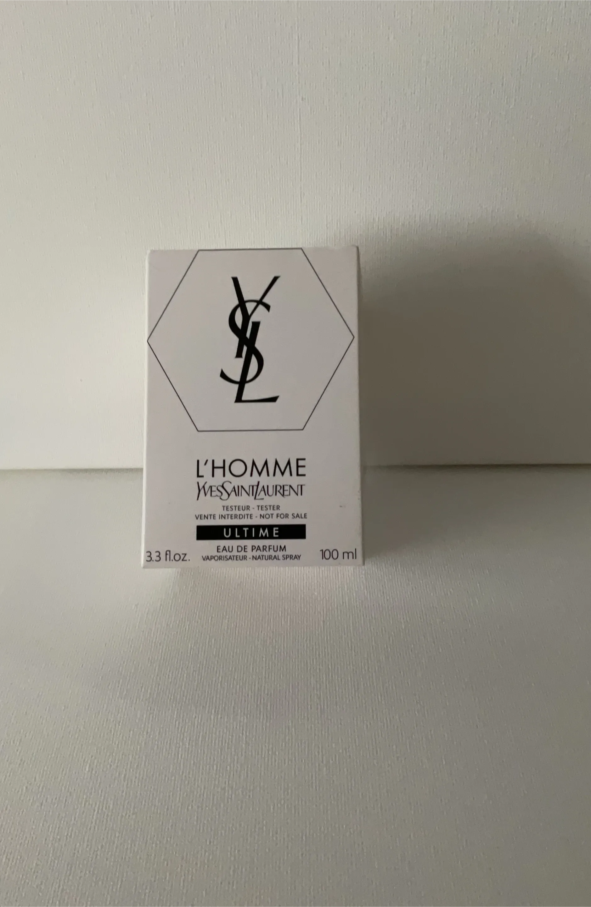 This is the Yves Saint Laurent L'Homme Ultime Eau de Parfum. It's a 100 ml natural spray. The bottle is 3.3 fl.oz. It's a tester and not for sale.