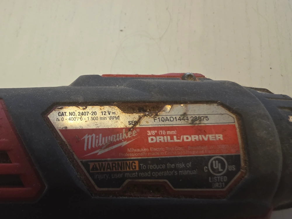 Selling a Milwaukee M12 3/8" Drill/Driver. It's in used condition, but still works great! It's a 12V drill/driver with a 3/8" (10mm) chuck. The model number is 2407-20. It has a speed of 0-400/0-1,500 RPM. Just let me know if you just need the drill alone or you need a battery with it. the price i have up is just for the tool alone.