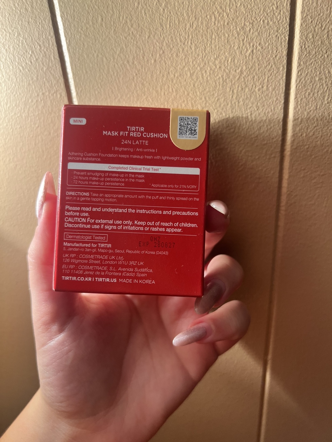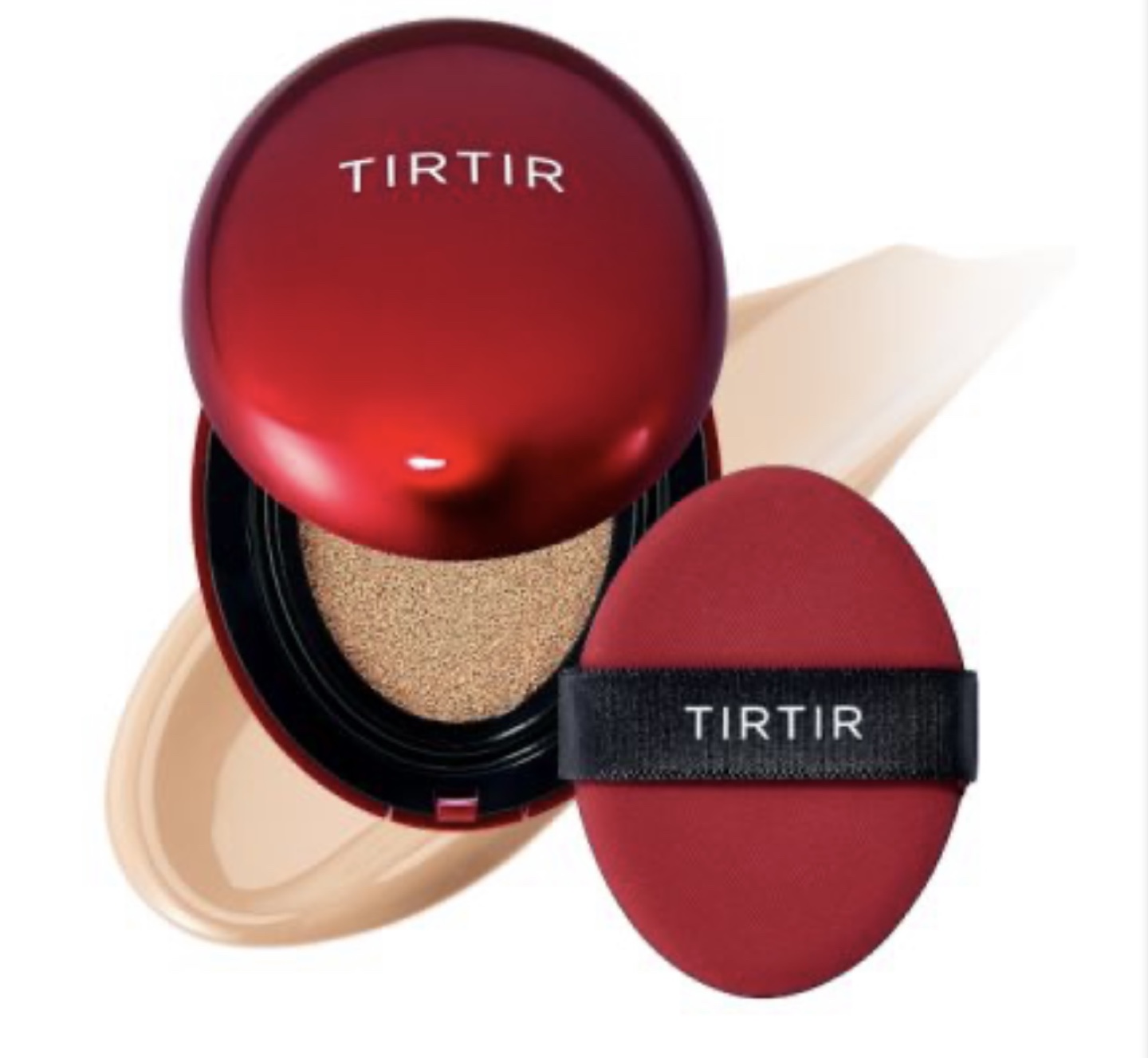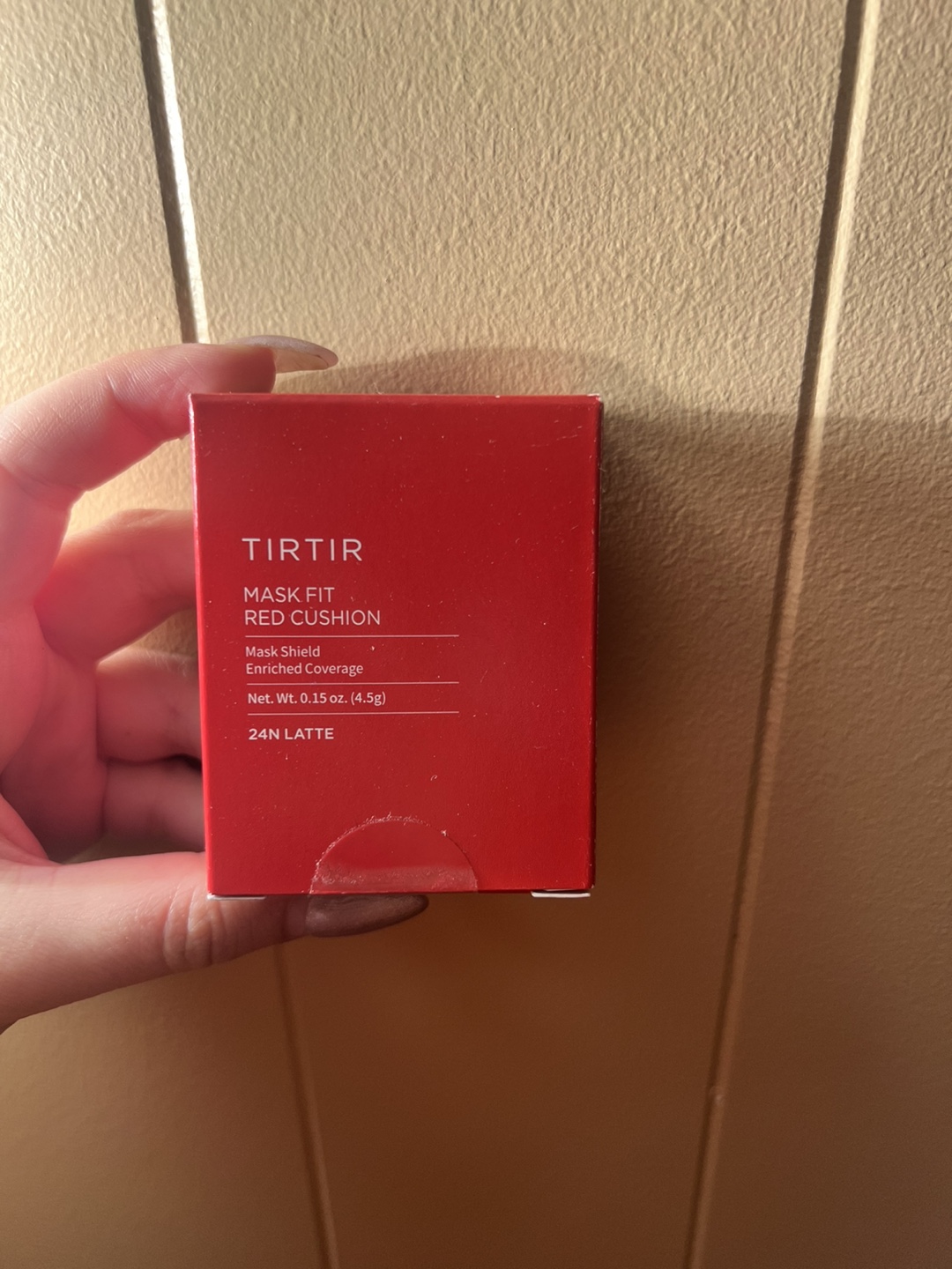Selling a TIRTIR Mask Fit Red Cushion in the shade 24N Latte! This cushion provides mask shield enriched coverage and helps with brightening and anti-wrinkle benefits. It's designed to keep your makeup fresh with a lightweight powder and skincare substance. The expiration date is 2028 August 27