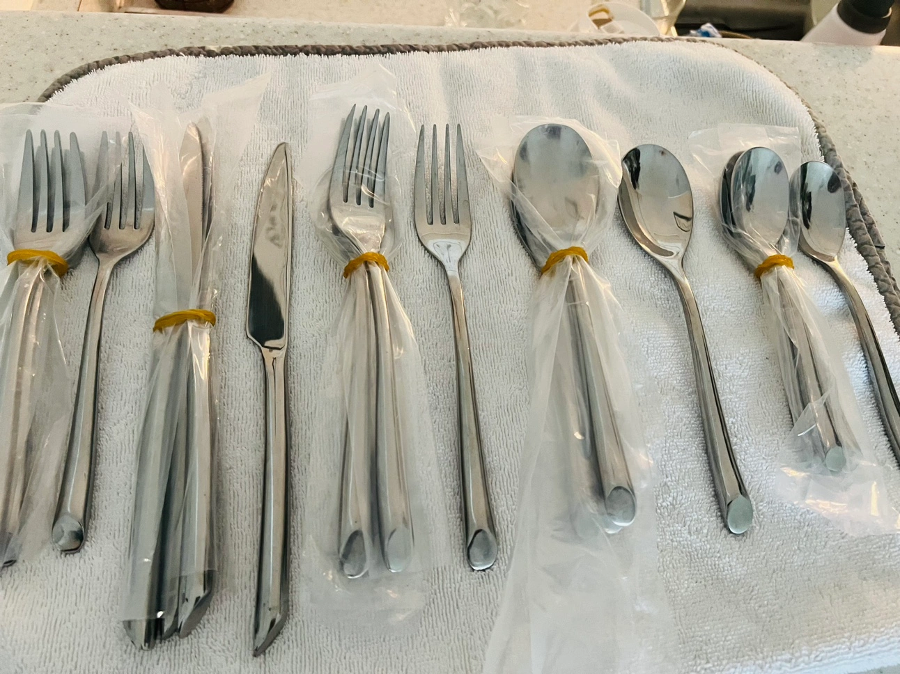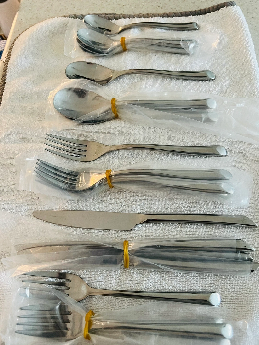 Includes: 4 salad forks, 4 dinner forks, 4 dinner knives, 4 soup spoons, and 4 teaspoons from smoke/ pet free home.