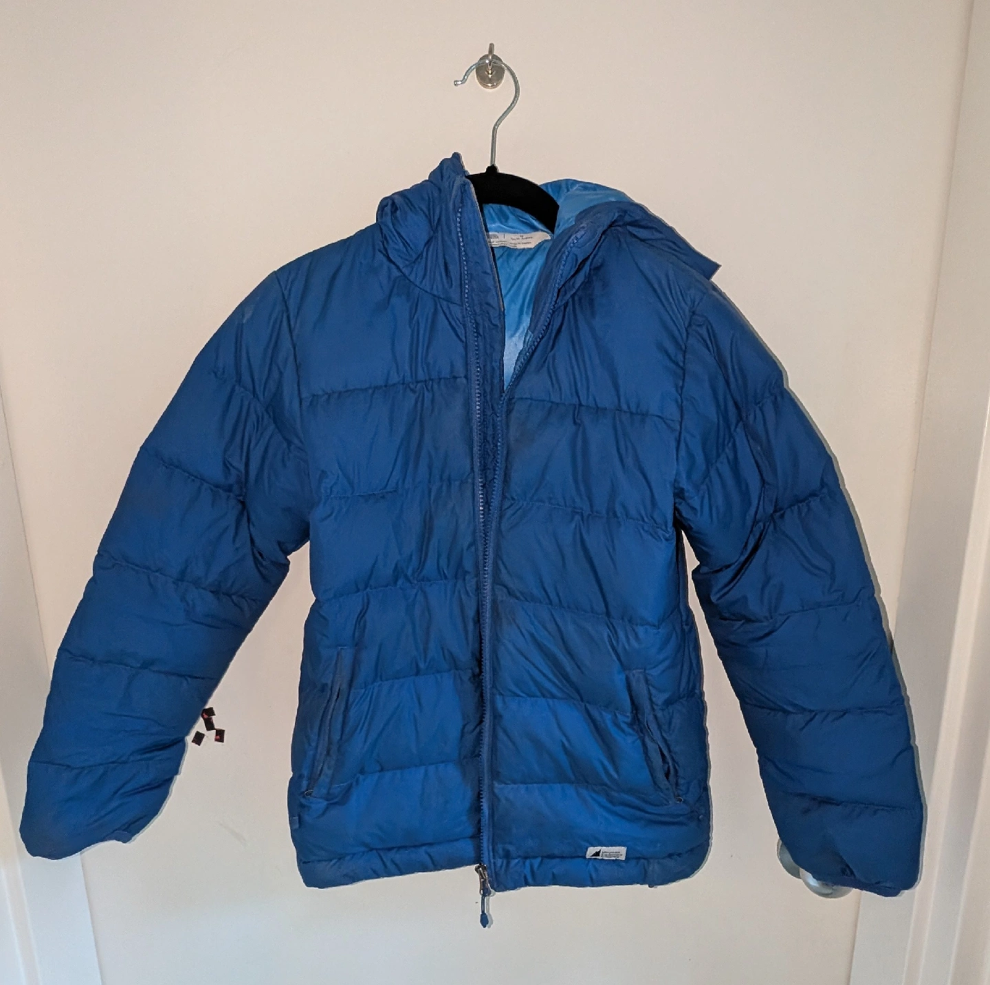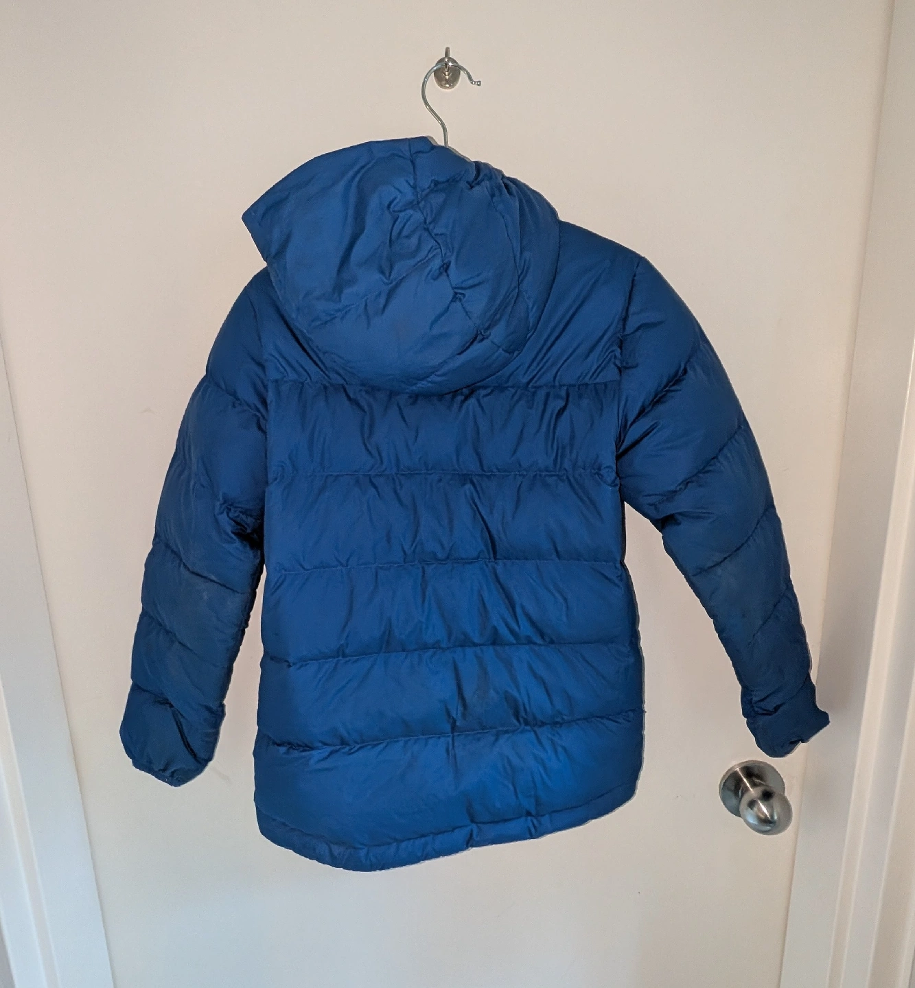 78Cozy MEC kids' down puffer jacket in a lovely blue colour! Perfect for keeping your little one warm during chilly days. It's in great condition and ready for a new home. Great for outdoor adventures or just playing in the snow. Size: 10 Youth