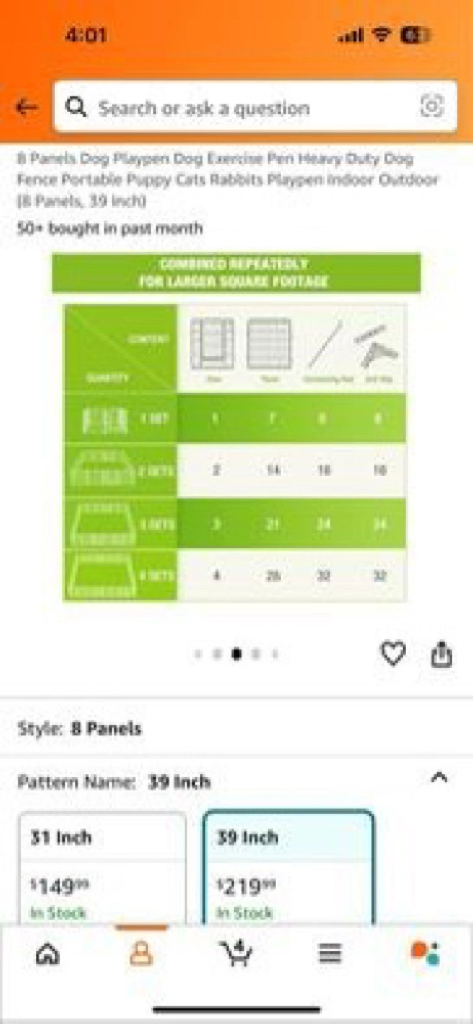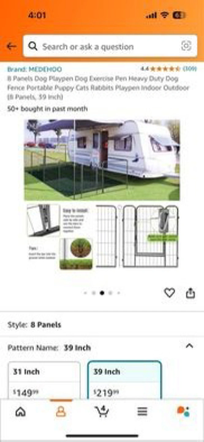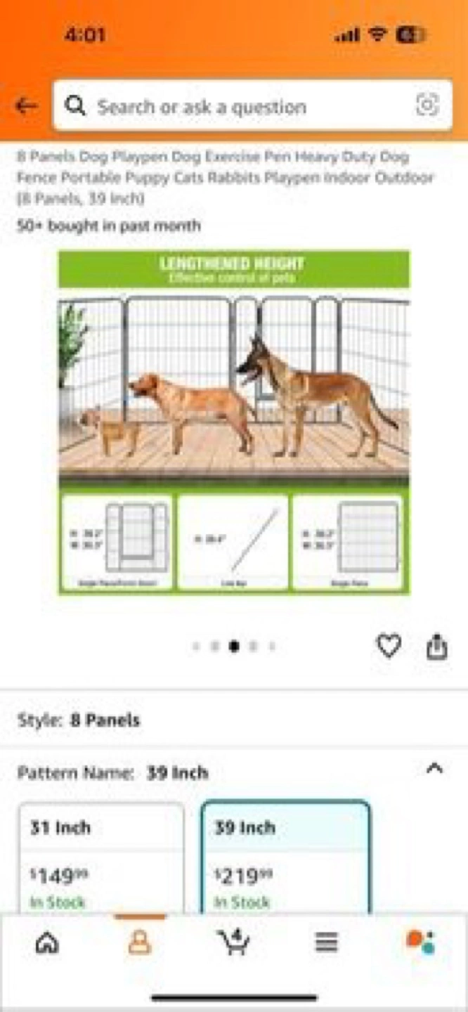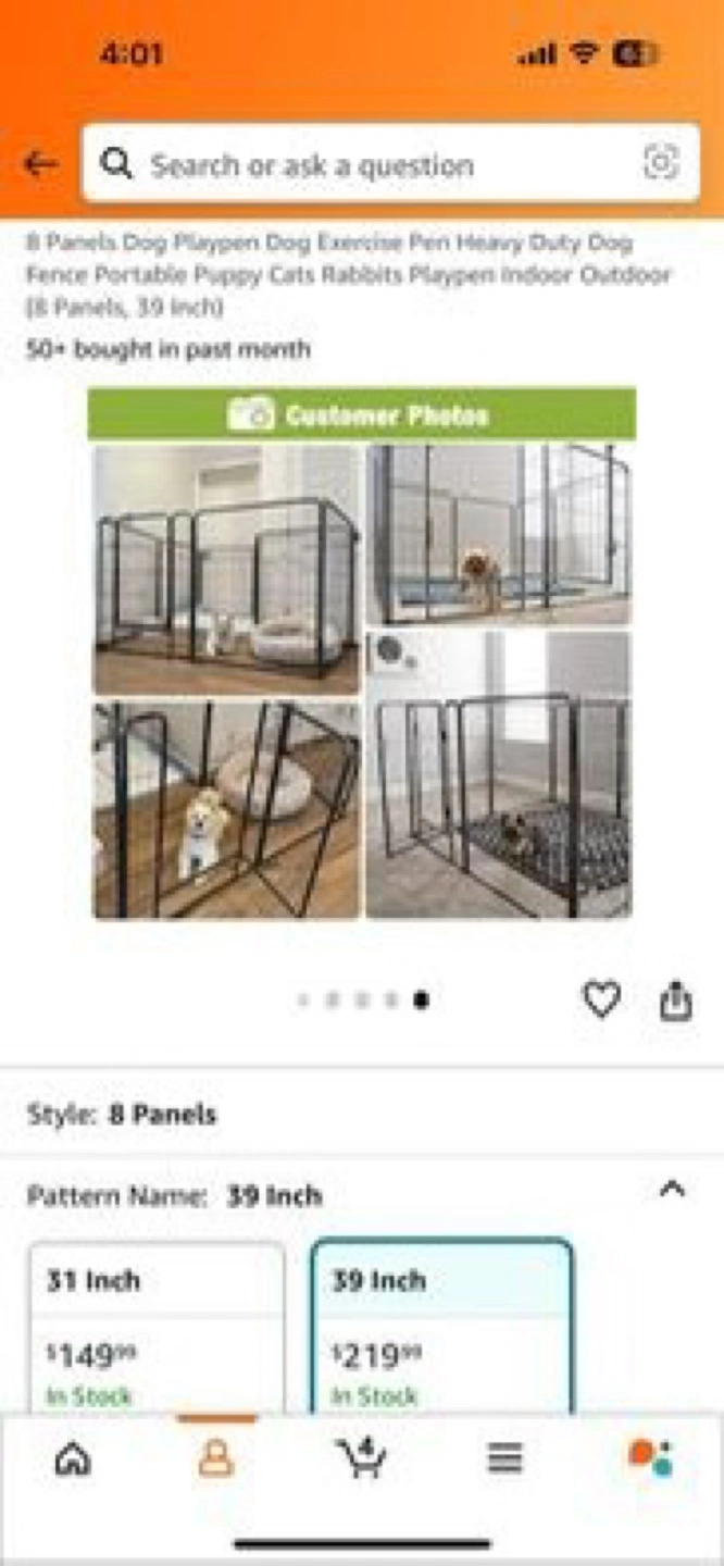 5Heavy-duty dog fence. Portable playpen for dogs, cats, and rabbits. Indoor or outdoor use. Eight panels, 39 inch height. Changeable shape.