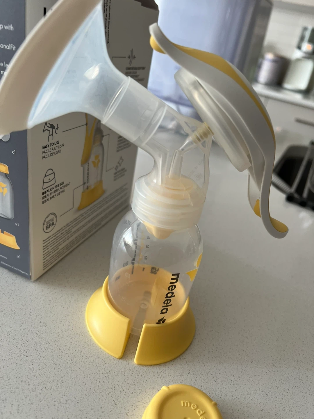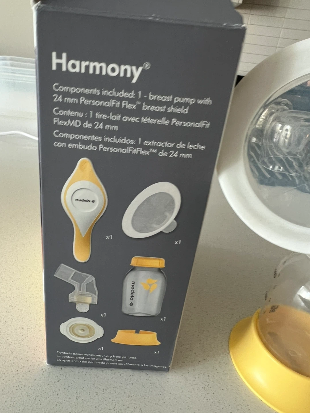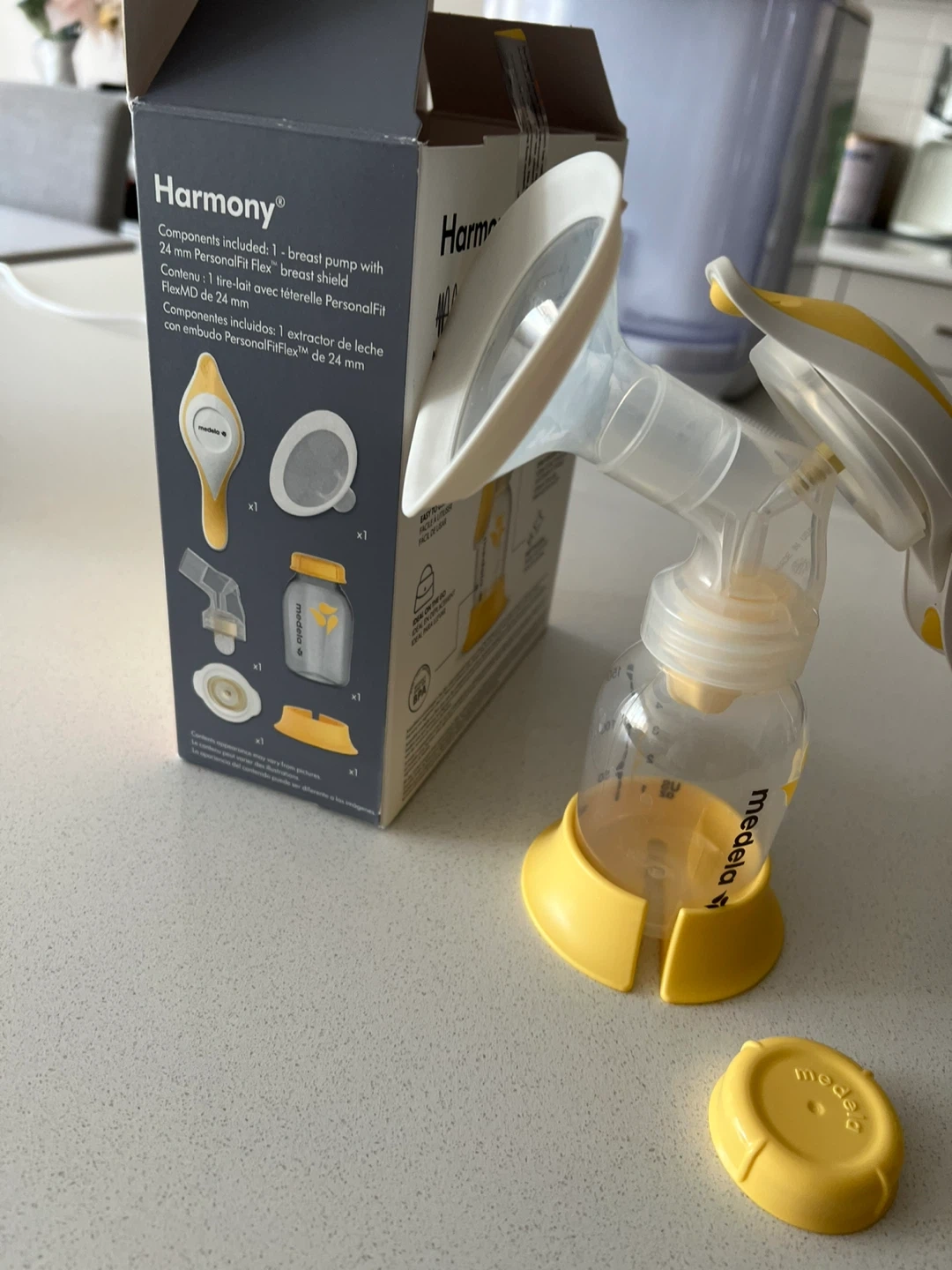 Selling a Medela Harmony manual breast pump! It's lightweight and portable, making it super convenient for on-the-go use. The box includes all the components you see here. It's designed for comfort and efficiency, so you can pump with ease