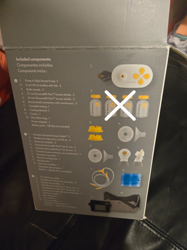 Pump In Style breast pump. It's a great way to comfortably collect milk while you tend to other things. Contains breast shields, bottles, tubing, and a cooler element. 2 collection bottles are missing