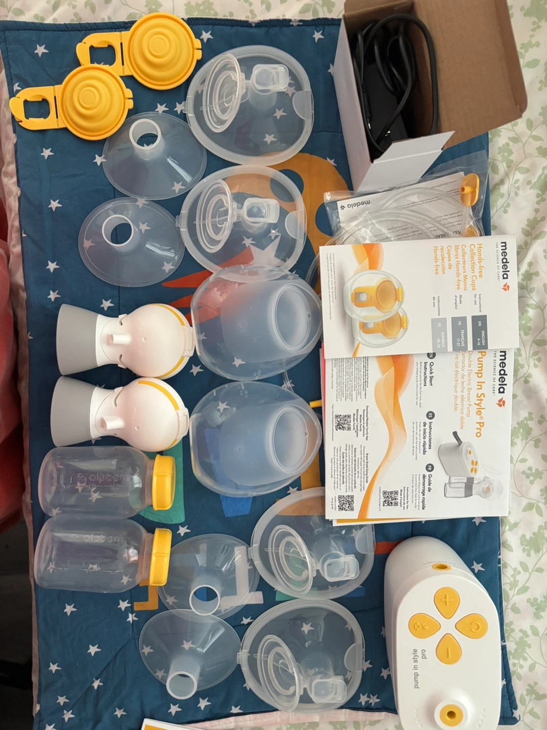 10Selling a Medela Pump In Style Pro bundle! This double electric breast pump comes with everything you see in the photos, including the box and all original components. It's designed for efficient and comfortable milk expression. Great for new moms! MEDELA PUMP IN STYLE PUMP YOUR WAY BREAST PUMP – All the great features of our Pump In Style Pro Traditional Pump but with the addition of Medela Hands-free Collection Cups for added pumping flexibility. Includes: (1) Pump In Style Pro, (2) Hands-free Collection Cups with 24 mm breast shield and O-ring; (2) 21 mm breast shield and O-ring; (1) Complete tubing; (2) Connectors with Membranes, (2) Bottles with Lids, (2) PersonalFit Plus Breast Shields 21 & 24 mm Purchased from walmart (220$ with tax) and Used only twice