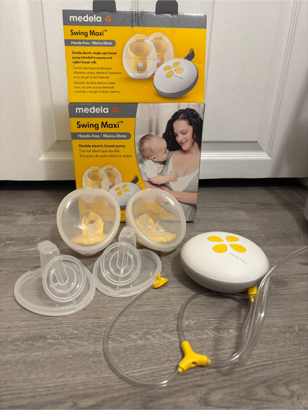 10Selling a Medela Swing Maxi double electric breast pump. It's a hands-free, tire-lait électrique double. Comes with all the components shown in the photos, including the box! Medela Swing Maxi Hands-Free Double Electric Breast Pump Bought on June 22, 2025, and lightly used for 2 months. Comes with original box, bill, adapter, and charging wire. In excellent condition — fully functional and clean. Ideal for moms looking for an efficient and comfortable double breast pump. Pickup Location: 11 Desertrose way L6P 2V2
