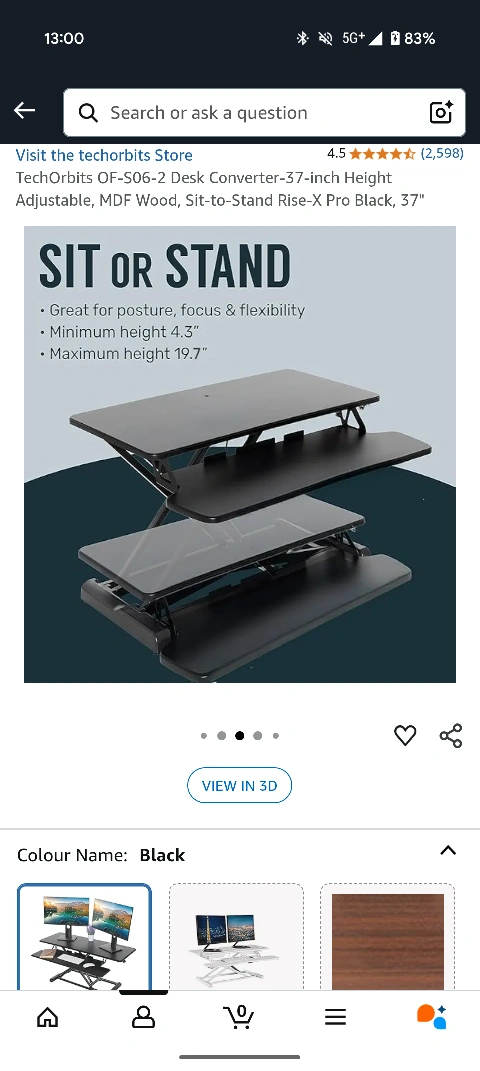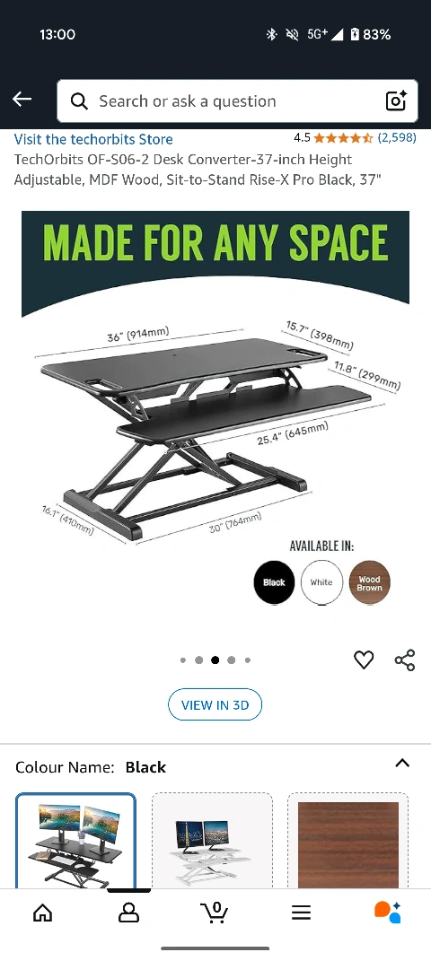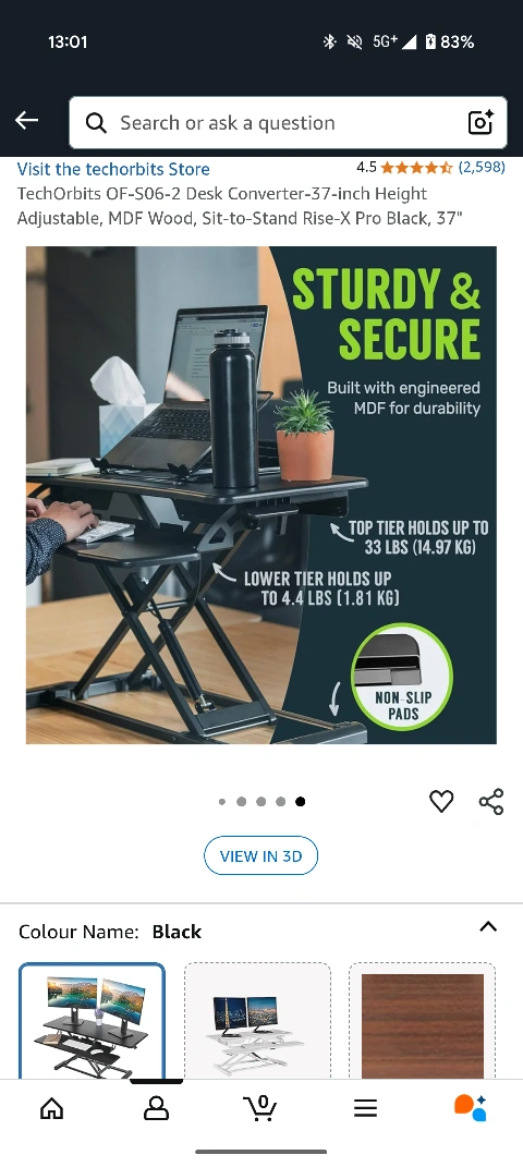 Looking to sell this sit-stand desk converter in black. It's been great for my posture and flexibility, allowing me to easily switch between sitting and standing throughout the day.