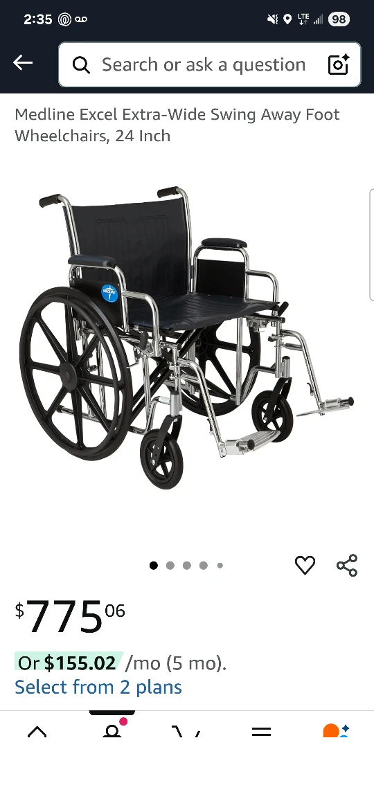 Selling a Medline Excel Extra-Wide Swing Away Foot Wheelchair, 24 inch. Never used, brand new. Retails for $775.06+tax