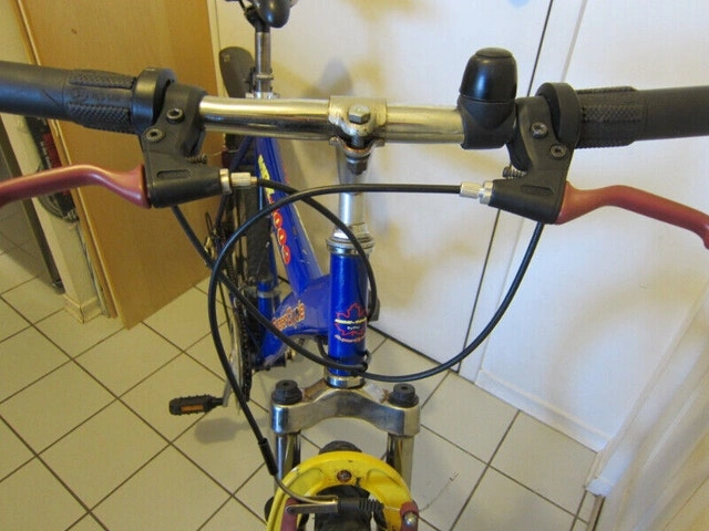 For sale is a Supercycle MBX-1000 all-terrain commuter bicycle with a 20" (50 cm) frame, suitable for riders 5'2"-5'10". It features good quality 26" black anodized rims with wide tires, 18-speed grip-twist shifters, strong V-brakes, and a comfortable seat. The bike is priced at $120 and includes a free helmet and kickstand. A rear fender and bell are available for an additional $20. The frame has some scratches, but overall, this bike is in good condition and ready to ride. For Sale By: Owner. Frame Size: M.