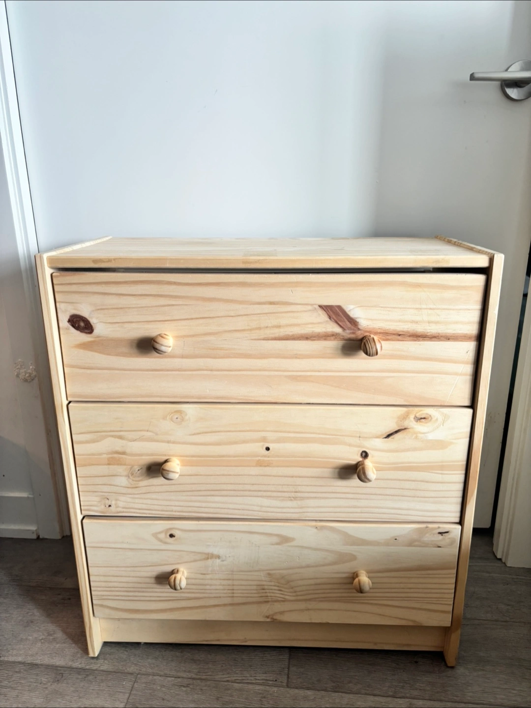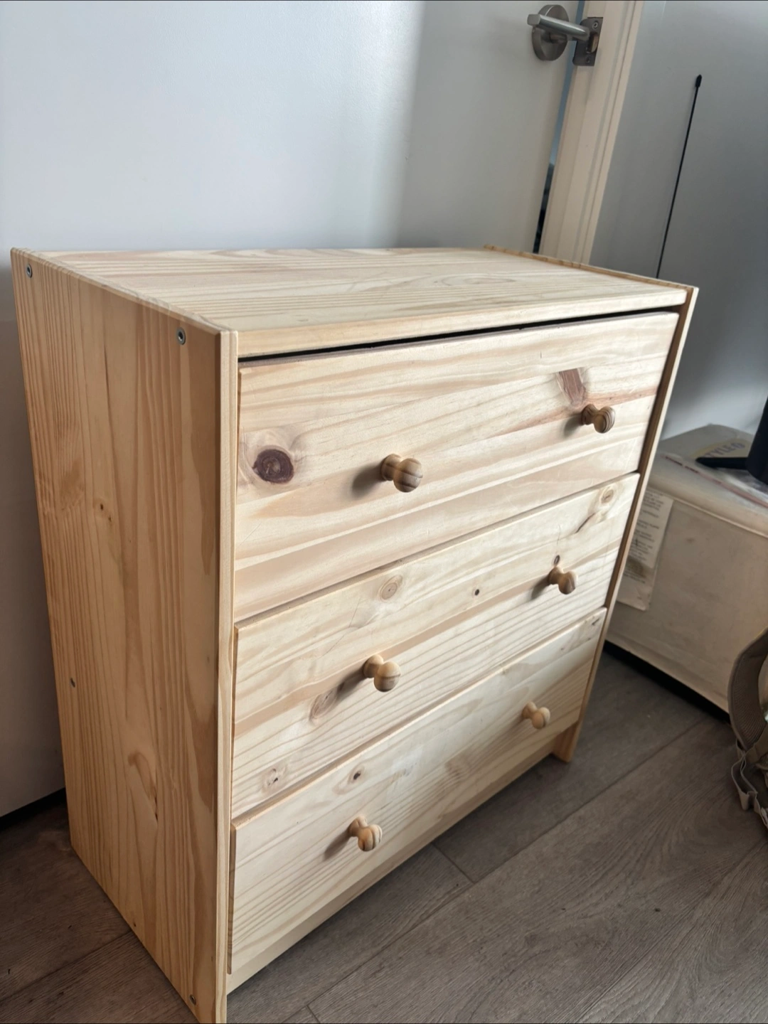 Selling an IKEA Ivar chest of drawers! It has three drawers and is made of solid wood. Great for adding some extra storage to any room around