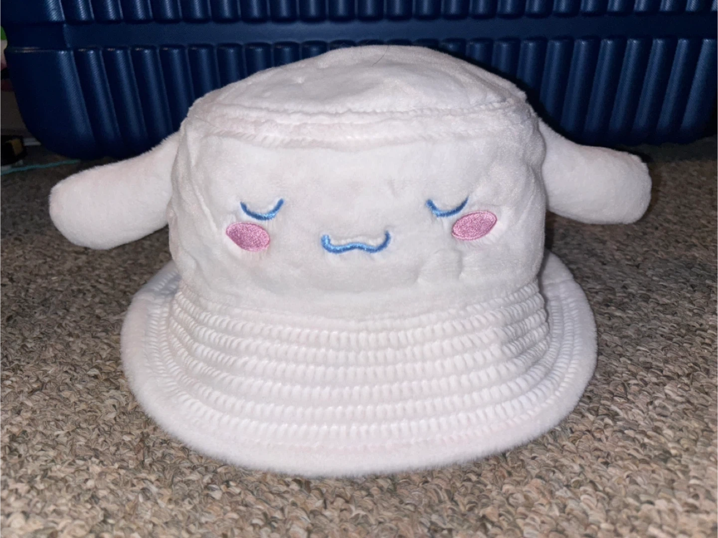 Super soft Cinnamoroll plush bucket hat! It's made of 100% polyester and features the adorable Cinnamoroll character design. Perfect for fans of Sanrio!