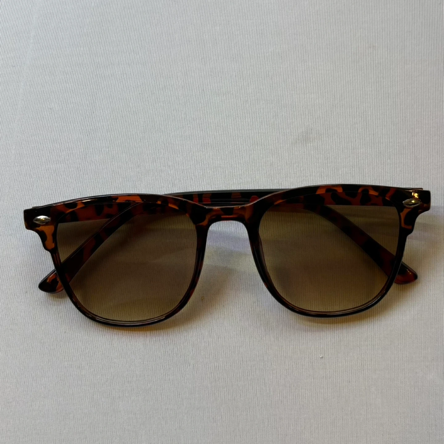 These tortoise shell sunglasses from Meet Glasses give off that effortless retro-chic vibe — perfect for everyday wear, vacations, festivals, or casual city style. The brown gradient lenses add warmth while providing eye protection. Item Details New in package! Brand: Meet Glasses Era: Modern Frame Color: Brown tortoise shell pattern (classic and neutral) Lens Color: Brown gradient tint Frame Style: Wayfarer, square, slightly oversized Fit: Unisex (fits most face shapes) Material: Polycarbonate Condition: New, never worn (except for photos) Size: Slightly oversized See photos for measurements. Flaws: None noted Cross posted. Sku: 15 Tortoise sunglasses, Brown lens sunglasses, Wayfarer style shades, Retro sunglasses, Oversized tortoise frames, Unisex eyewear, Classic sunglasses, Summer accessories Winnipeg - Pick up only (Located 2 blocks west of Polo Park). Shipping options available through other platforms message me for details.
