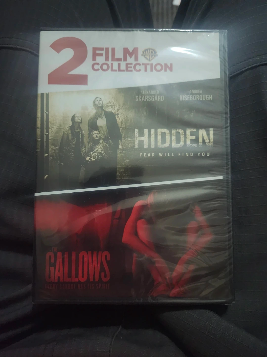 This is a 2-film collection DVD featuring 'Hidden' and 'The Gallows'. 'Hidden' stars Alexander Skarsgård and Andrea Riseborough. 'The Gallows' has the tagline 'Every school has its spirit'.
